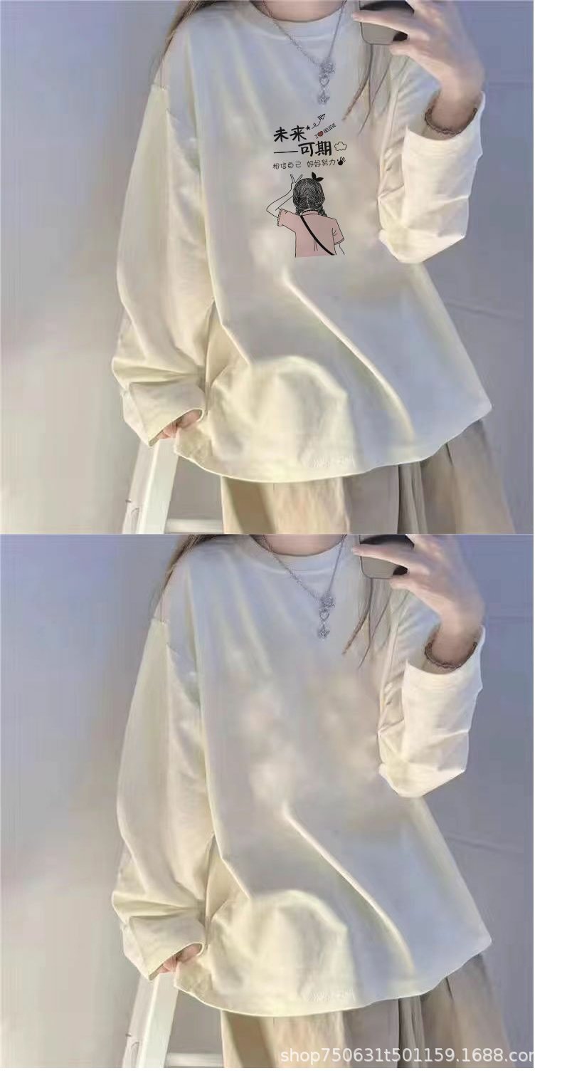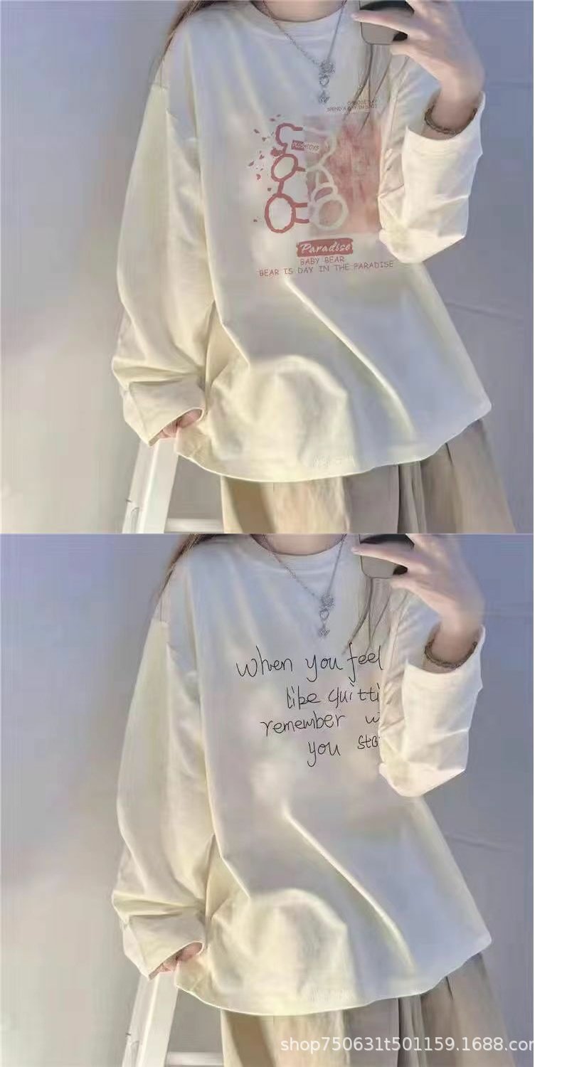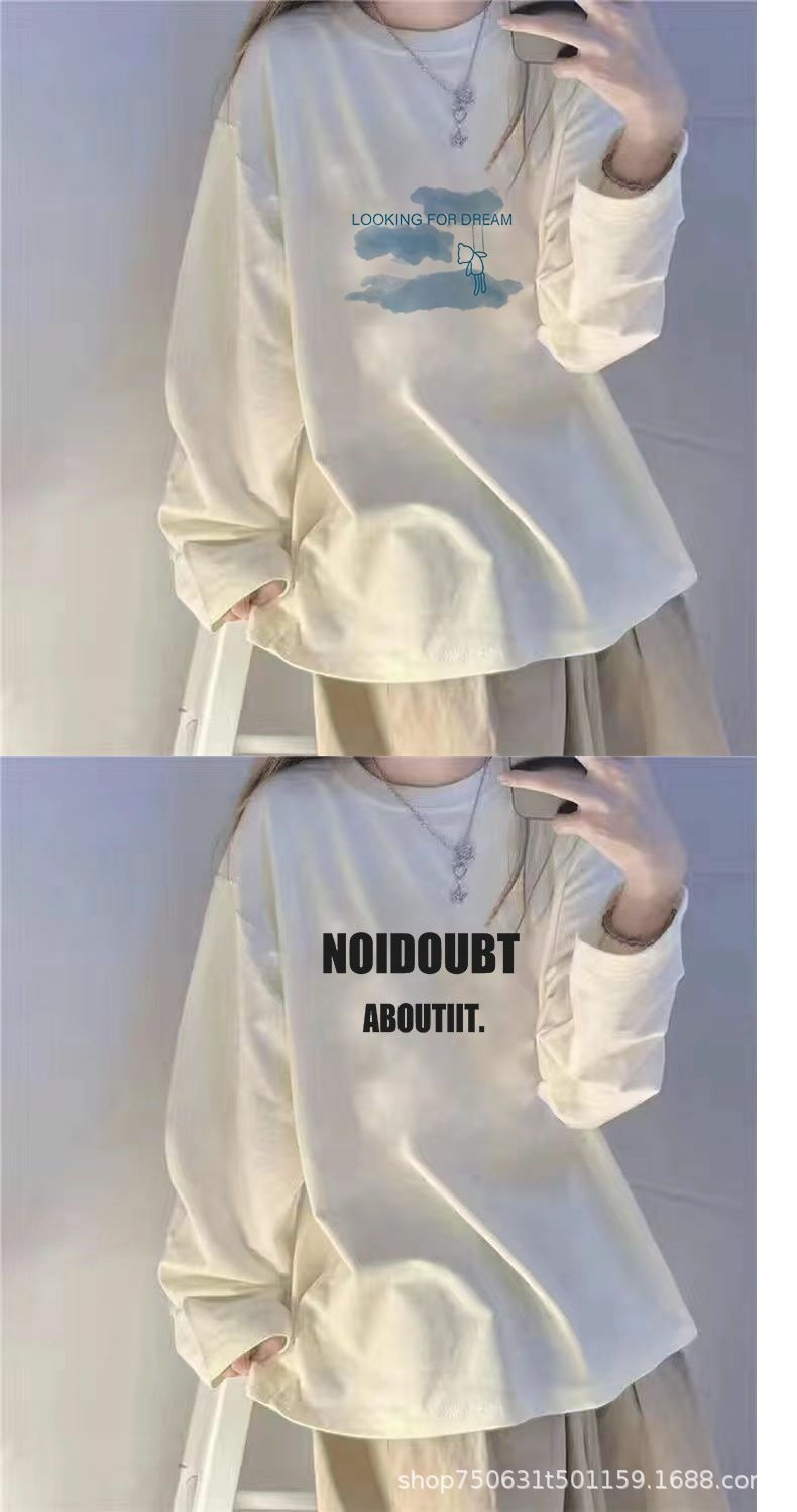 흰색 긴팔 티셔츠 여성의 2024 년 새로운 가을과 겨울 내부 크루 넥베이스 셔츠 디자인 센스 틈새 탑 Ins 트렌디스토어 가기