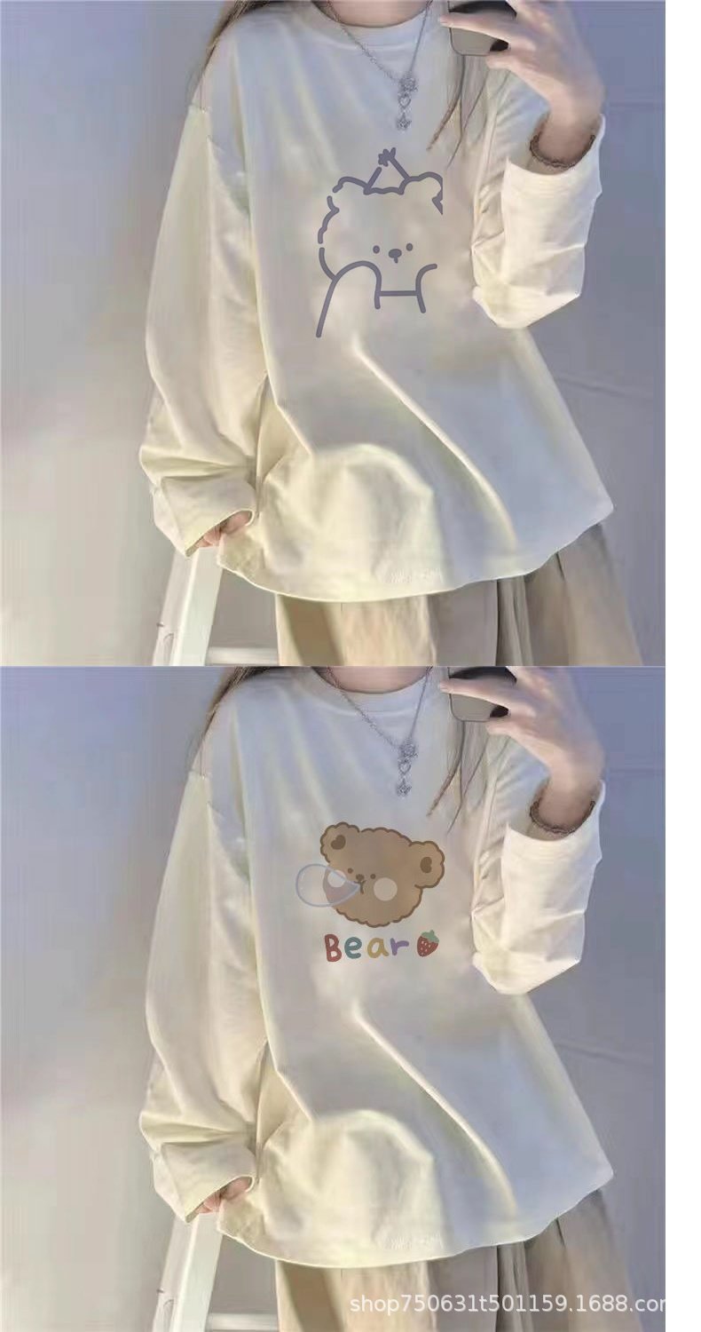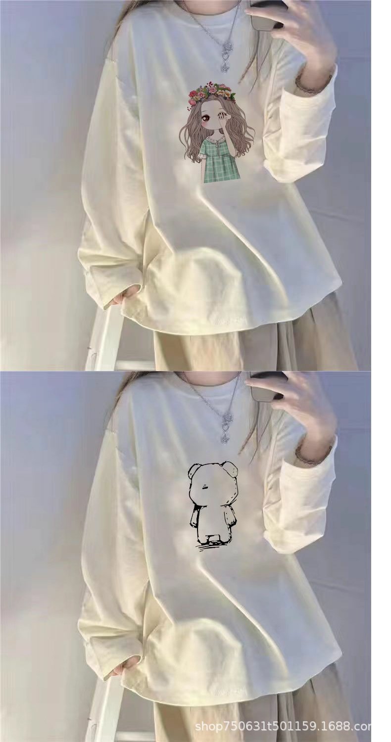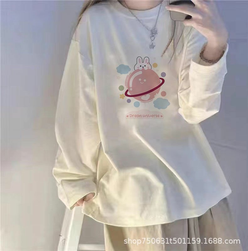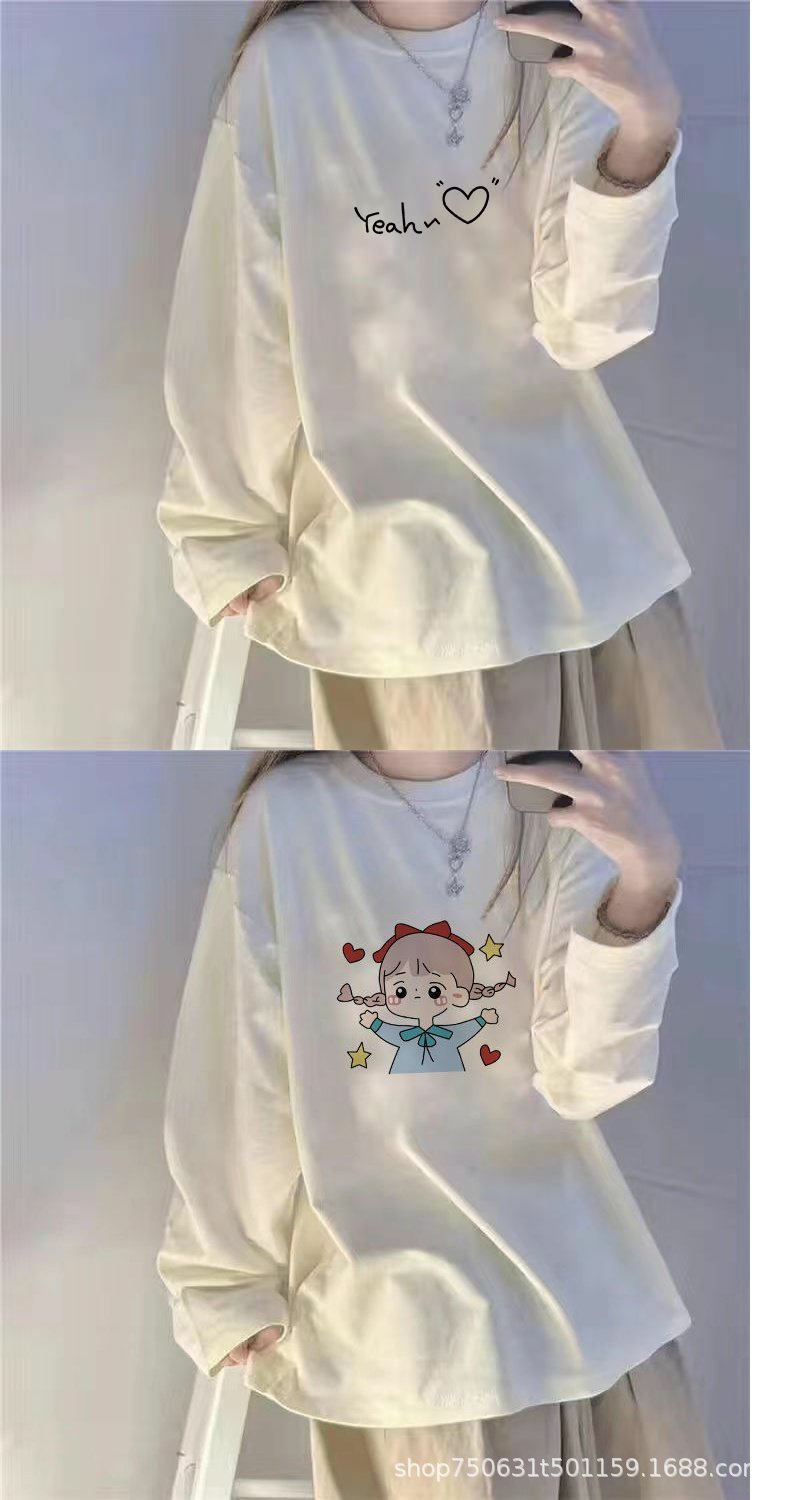 흰색 긴팔 티셔츠 여성의 2024 년 새로운 가을과 겨울 내부 크루 넥베이스 셔츠 디자인 센스 틈새 탑 Ins 트렌디스토어 가기