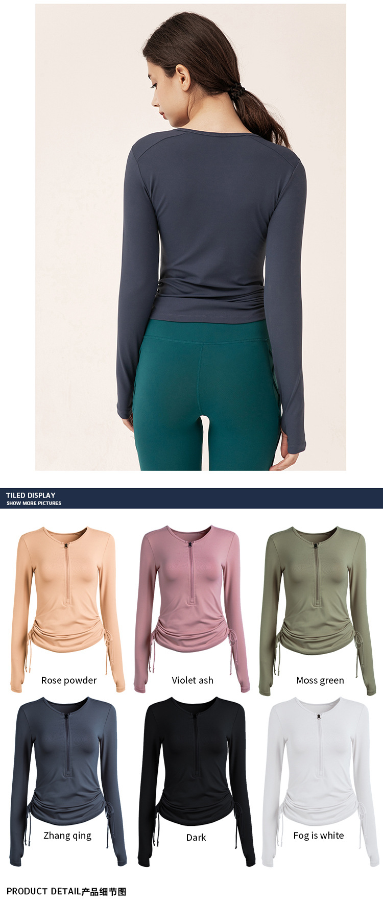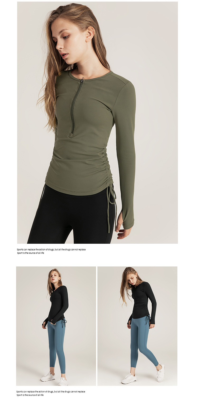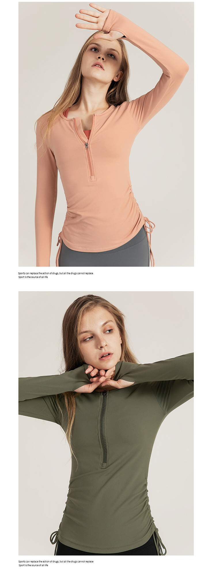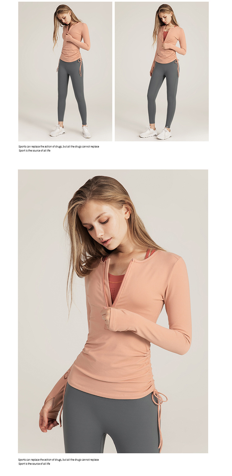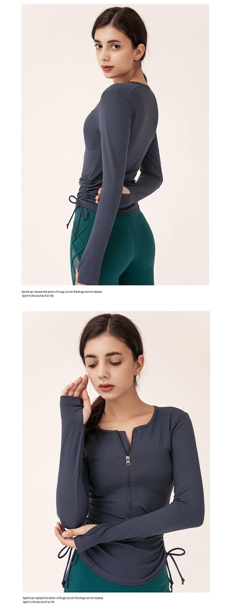 [엄격한 선택] 가을과 겨울 drawstring 요가 의류 긴팔 여성 스타킹 야외 달리기 스포츠 코트 탑 피트니스 의류