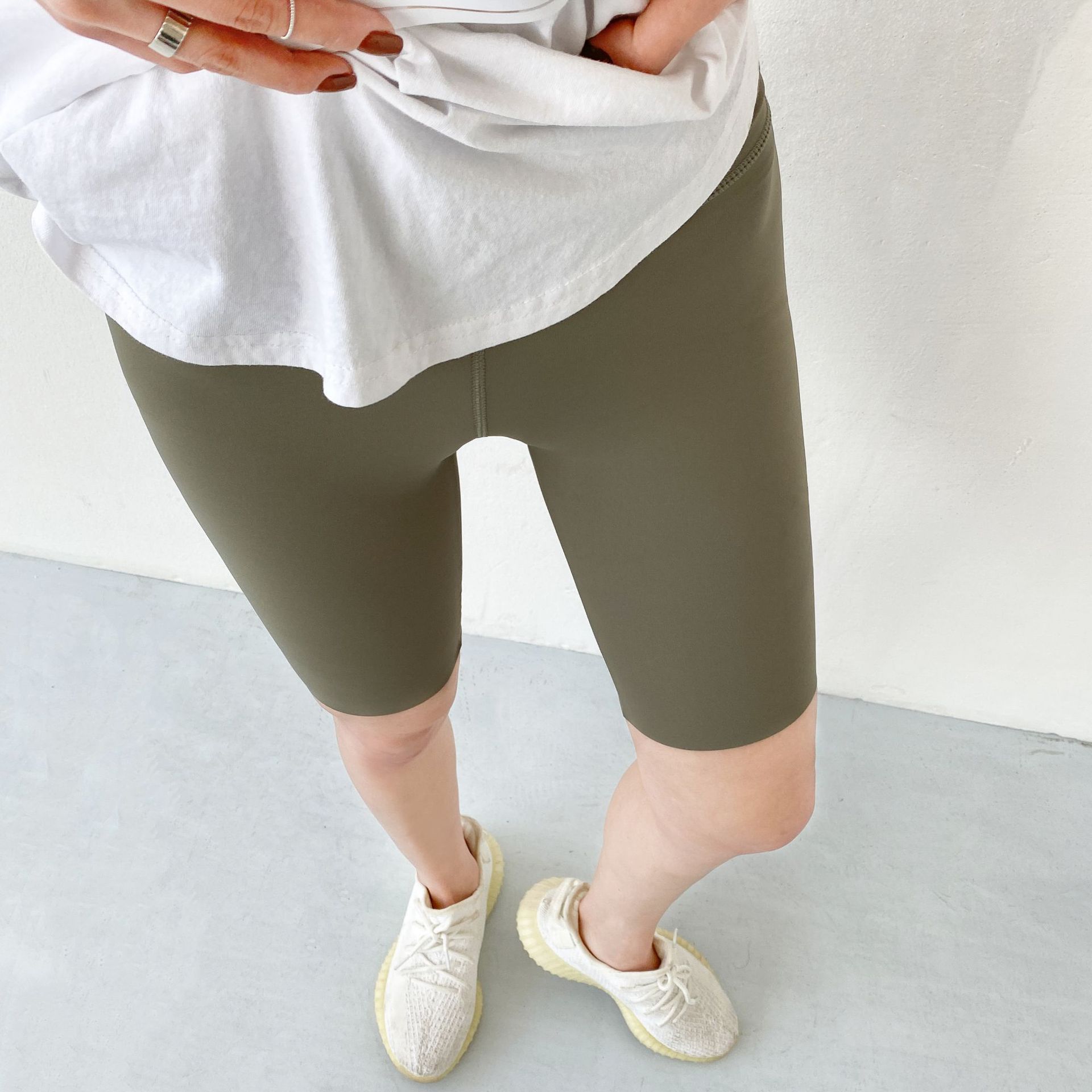상어 바지 여성용 겉옷 여름 얇은 하이 웨이스트 배꼽 색조 엉덩이 리프팅 바비 바지 꽉 5 점 바지 승마 바닥 반바지스토어 가기