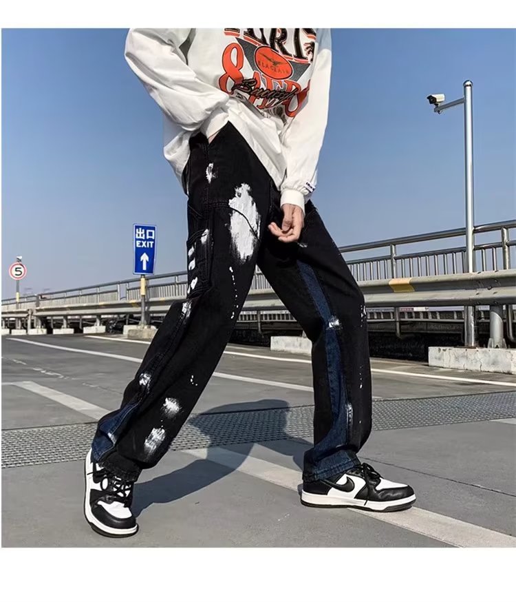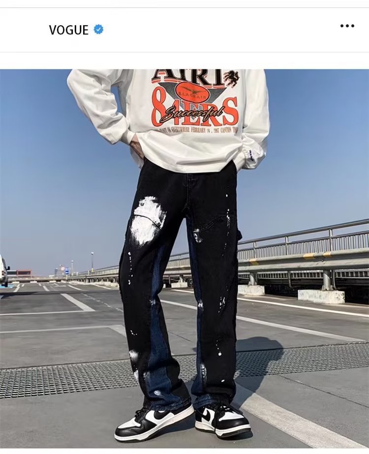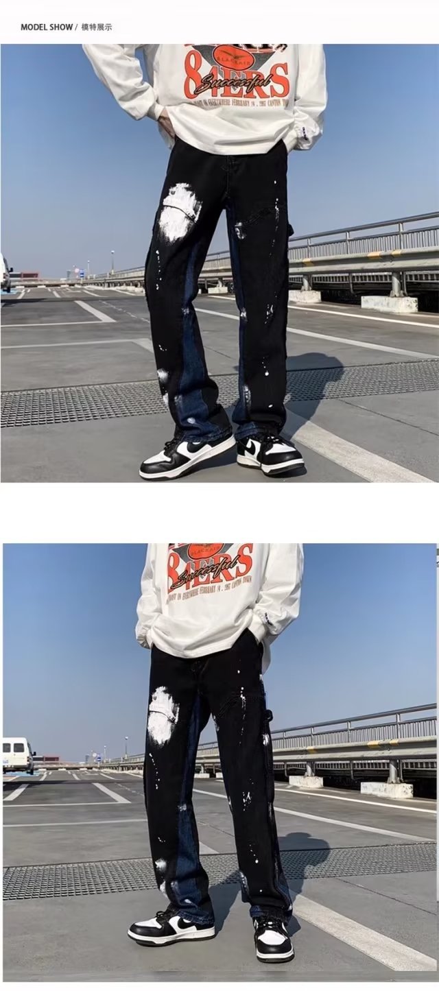 청바지 남성 루즈한 스트레이트 한국식 트렌디 한 모든 경기 봄과 가을 발목 길이 바지 와이드 레그 캐주얼 바지 Instagram 인기 브랜드스토어 가기