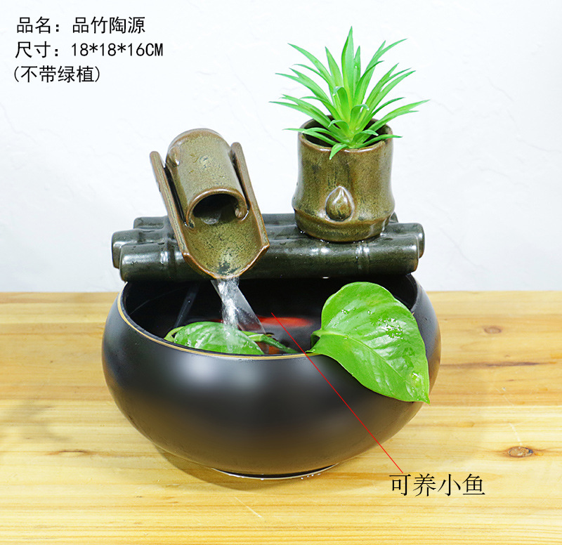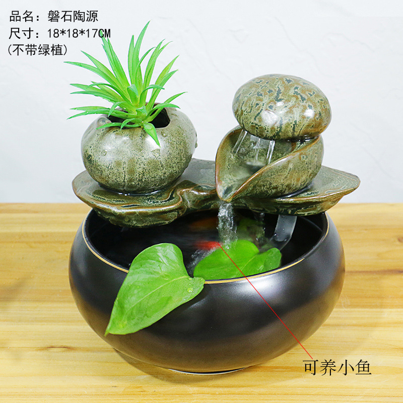 목가적 인 세라믹 순환 분수 데스크탑 작은 장식품 홈 거실 TV 캐비닛 장식 개회식스토어 가기