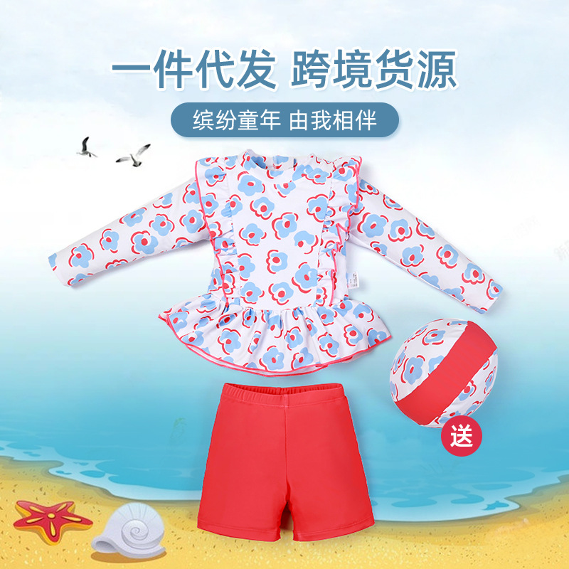 새로운 in 여자 수영복 분할 긴 소매 공주 비키니 세트 어린이 자외선 차단제 어린이 소녀 수영복스토어 가기