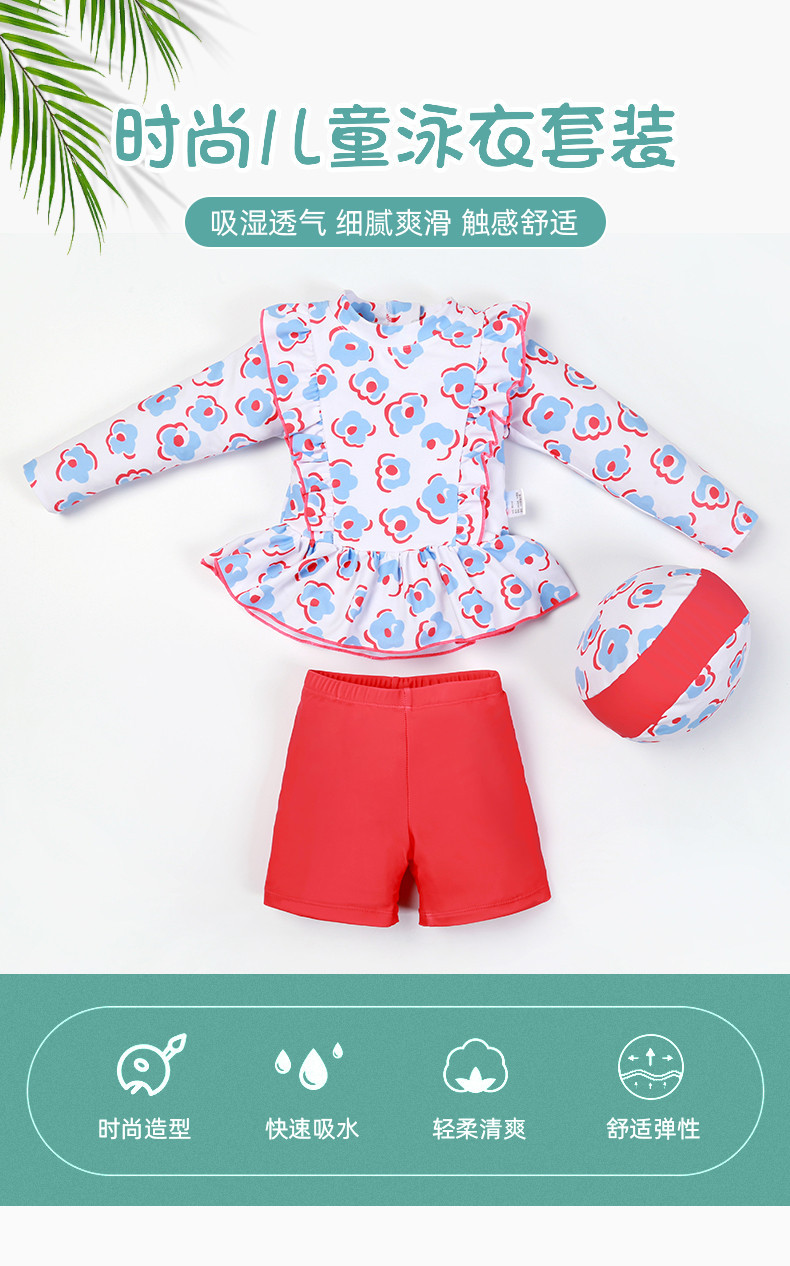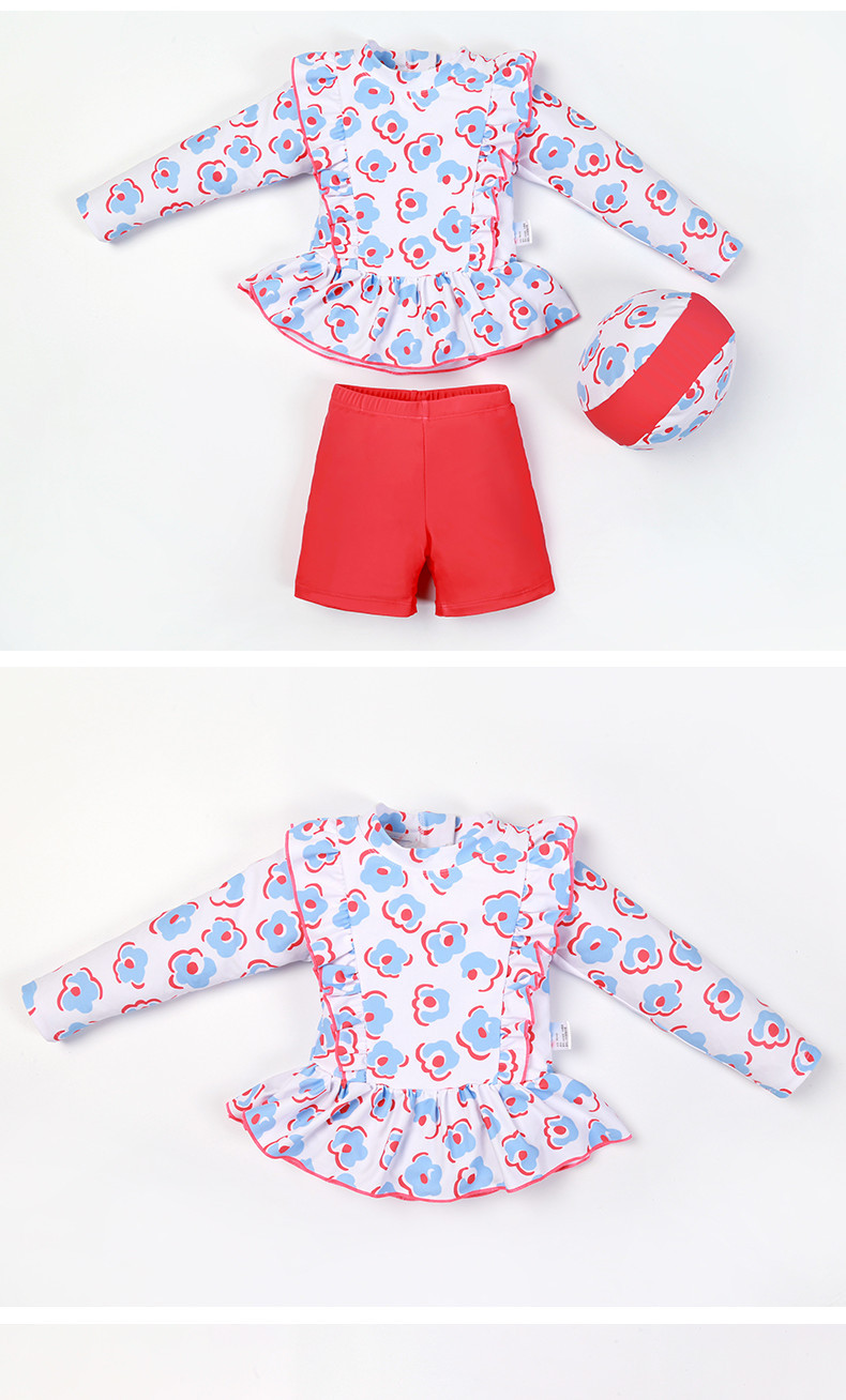 새로운 in 여자 수영복 분할 긴 소매 공주 비키니 세트 어린이 자외선 차단제 어린이 소녀 수영복