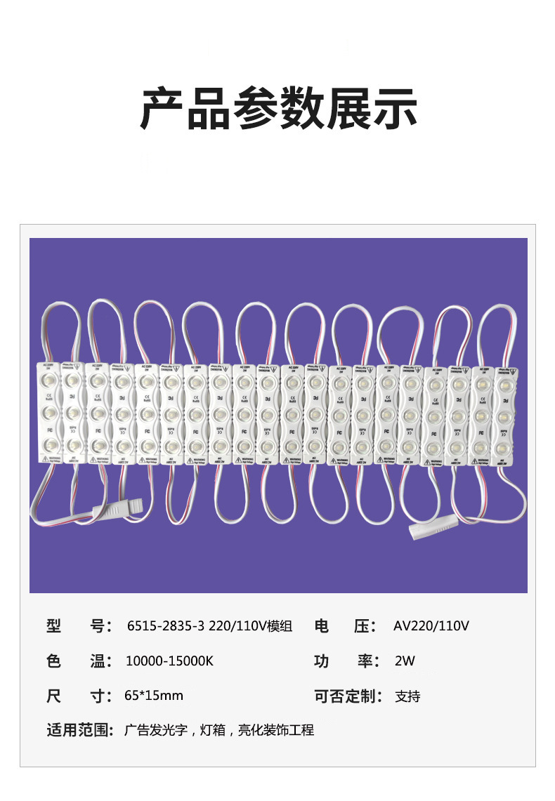 2835 사출 성형 단색 방수 고전압 모듈 확산 반사 렌즈 led 광고 110V 광원 3 조명 모듈스토어 가기
