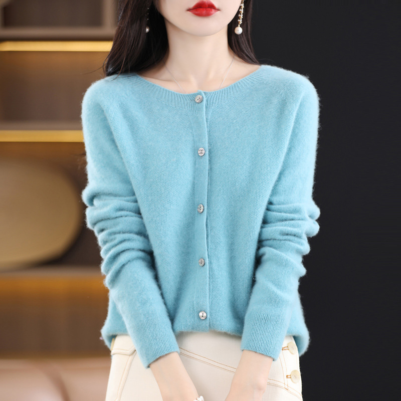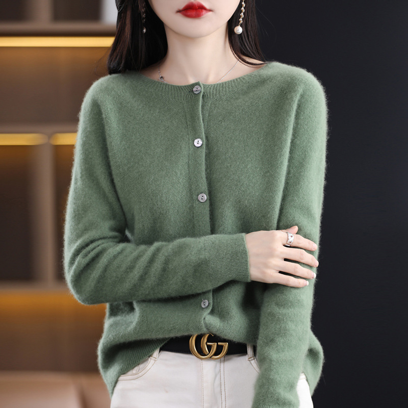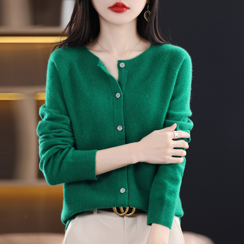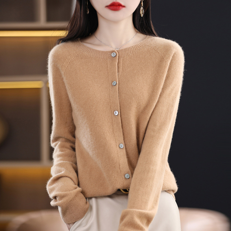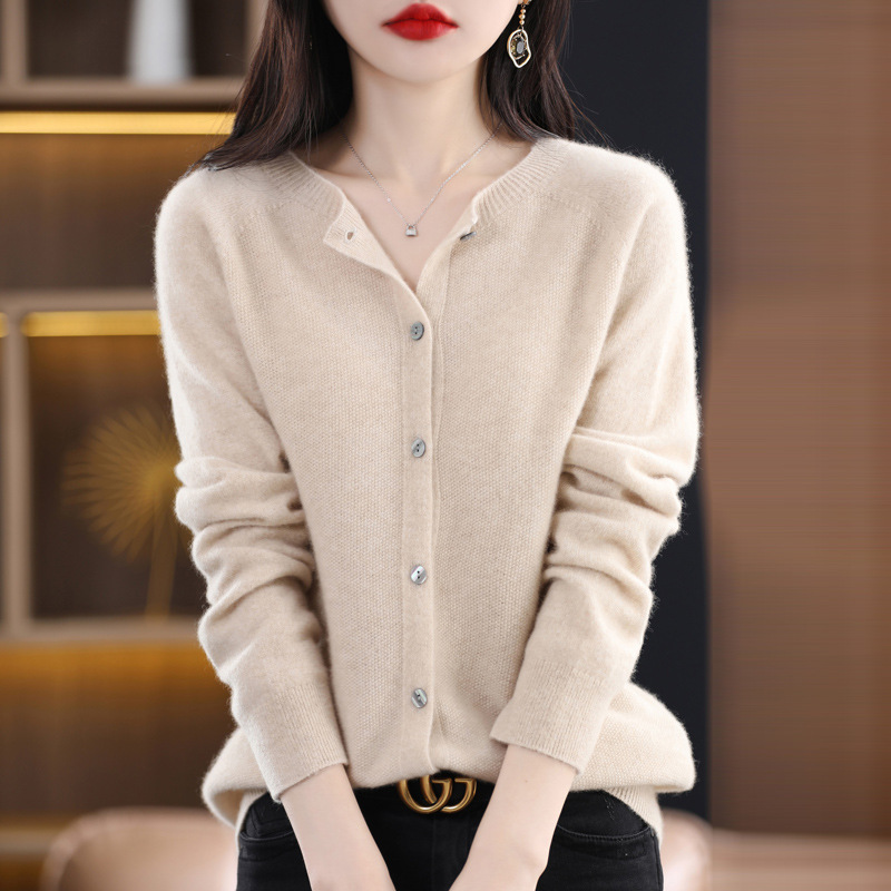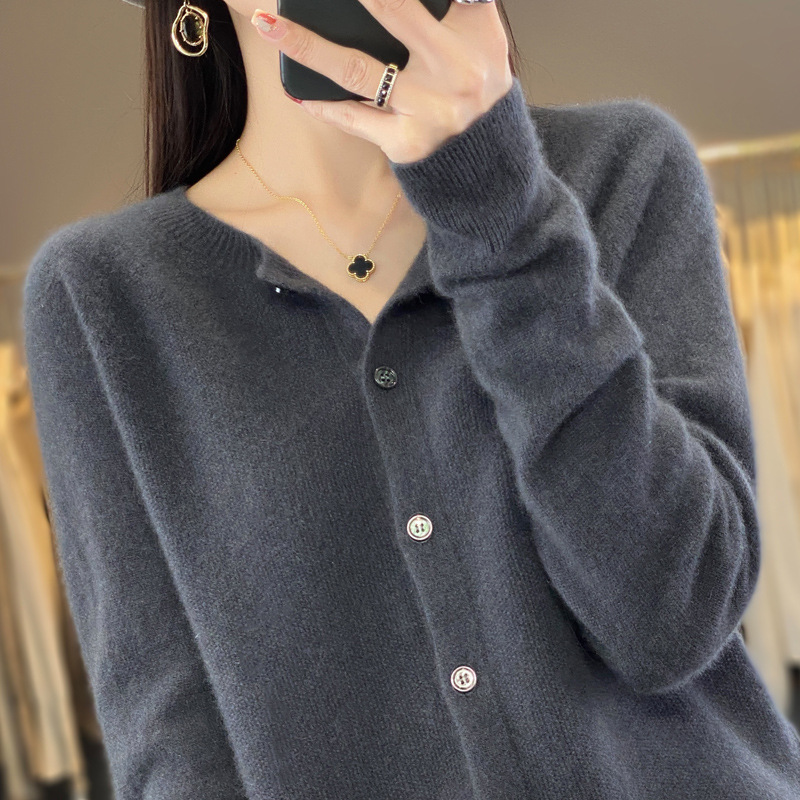 원 라인 레디 메이드 의류 100 올 울 니트 가디건 여성 가을과 겨울 새로운 루즈한 재킷 올매치 편안한 스웨터 트렌디
