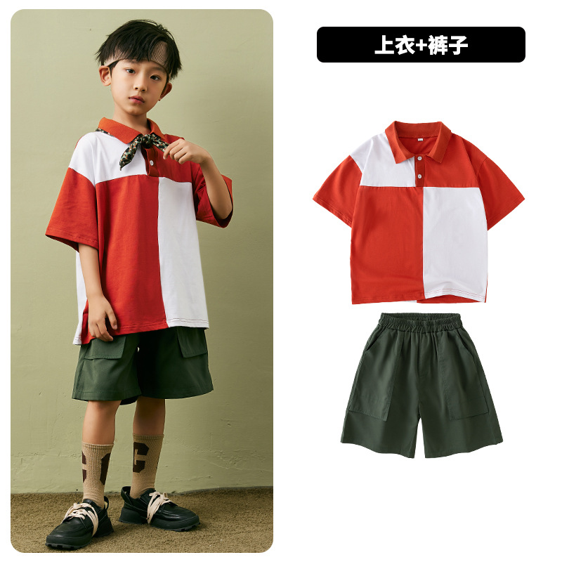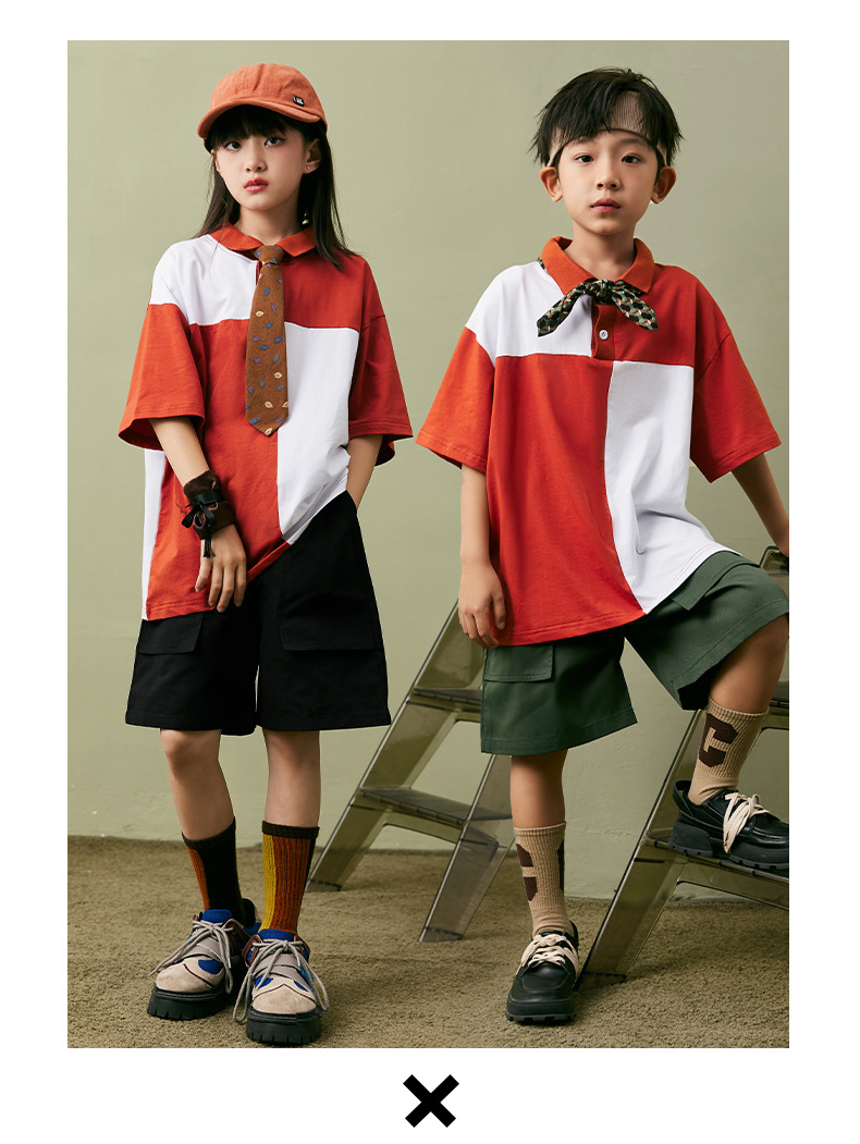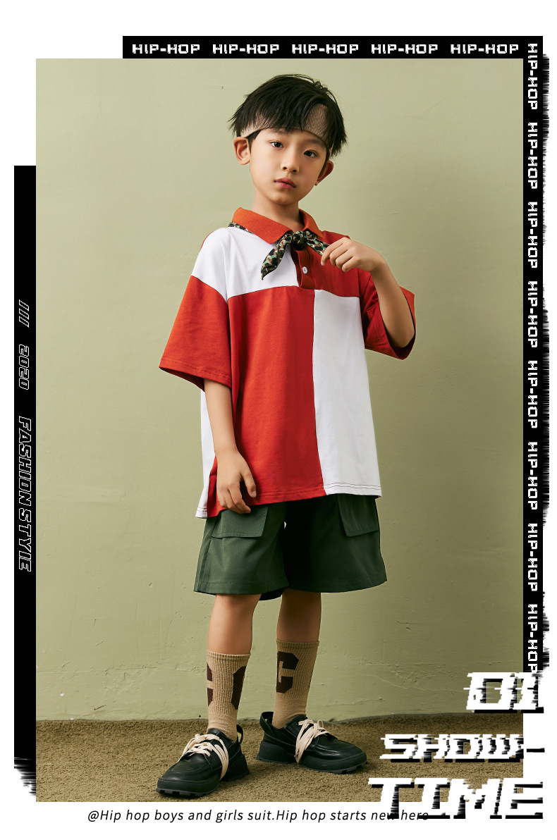어린이 힙합 패션 의류 소년 느슨한 폴로 셔츠 티셔츠 세트 힙합 스타일 어린이 잘 생긴 아동복 공연 옷 여름스토어 가기