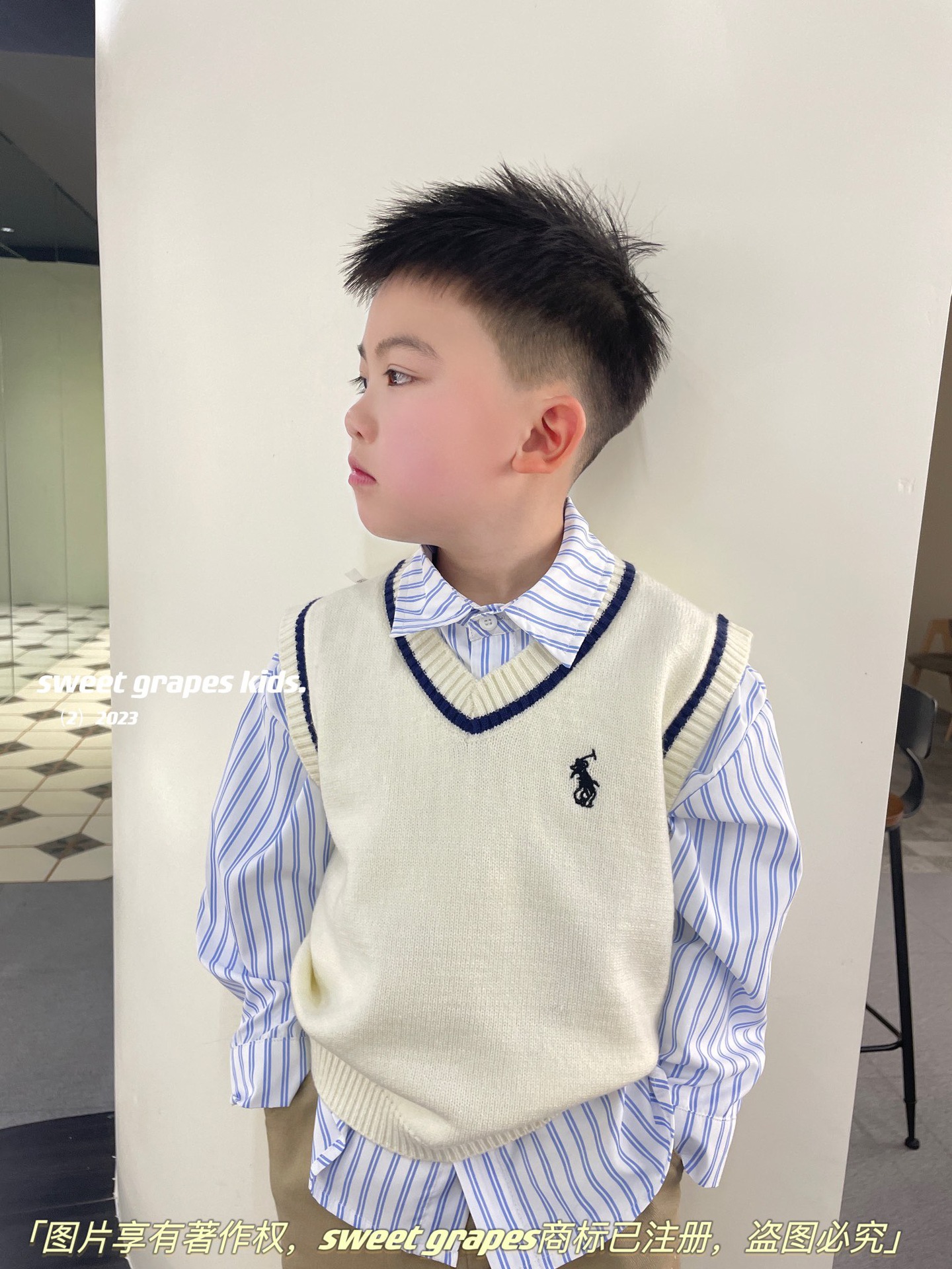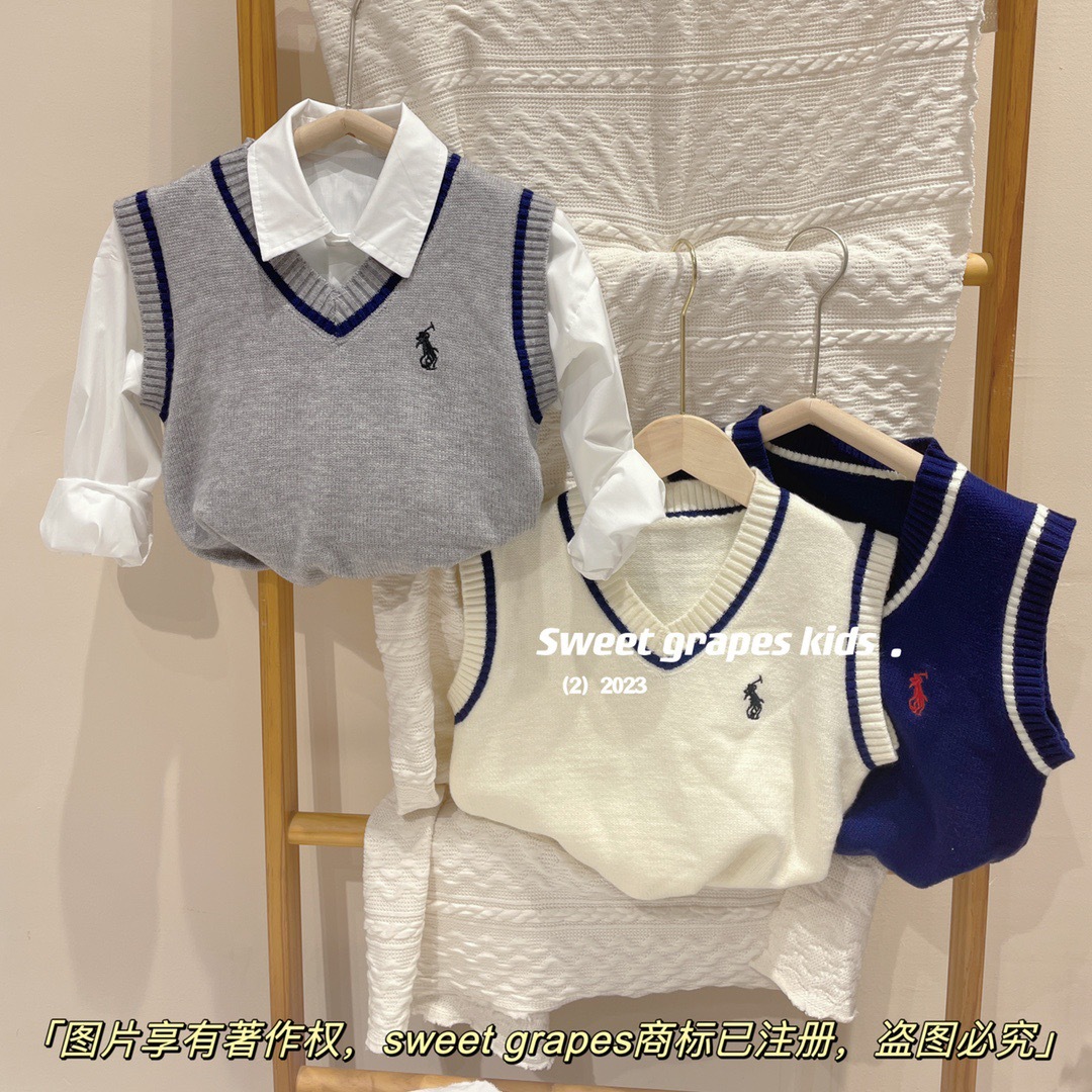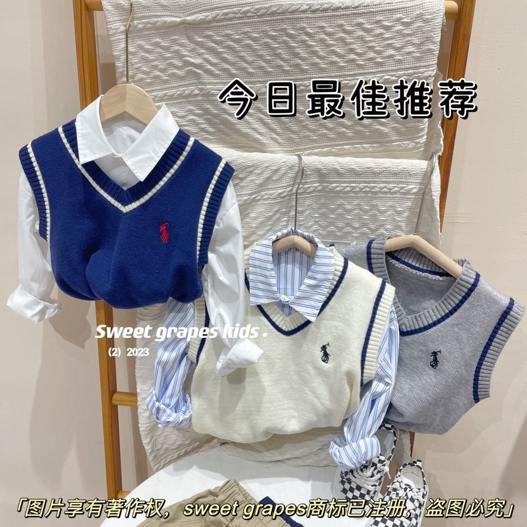 2023 년 일본 구매 랄프 보이즈 포니 쓰리피스 울 조끼 + 긴팔 셔츠 + 캐주얼 팬츠 아동복스토어 가기