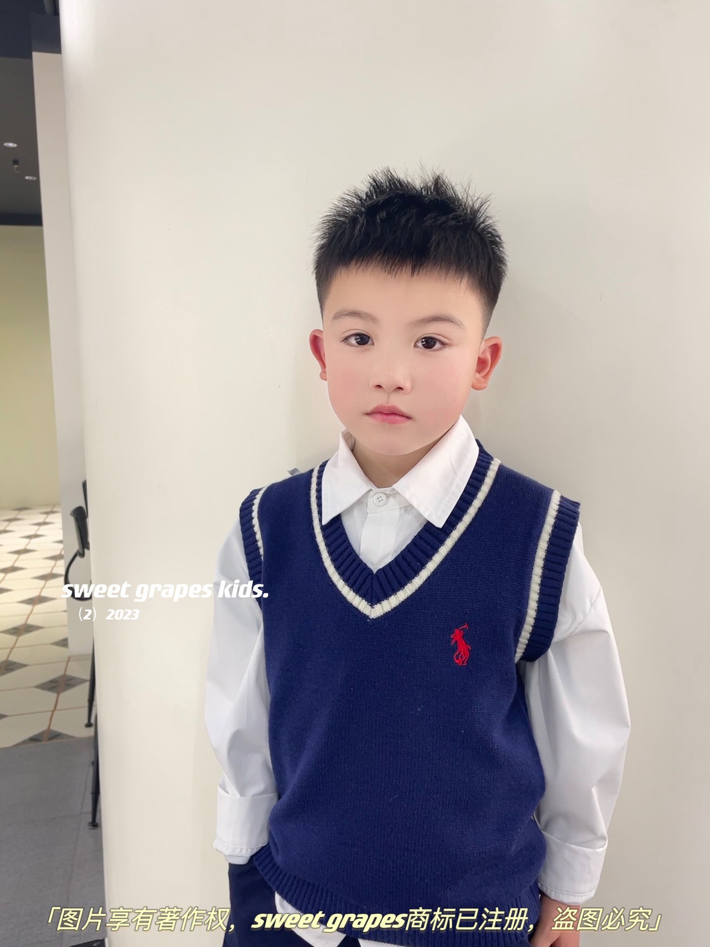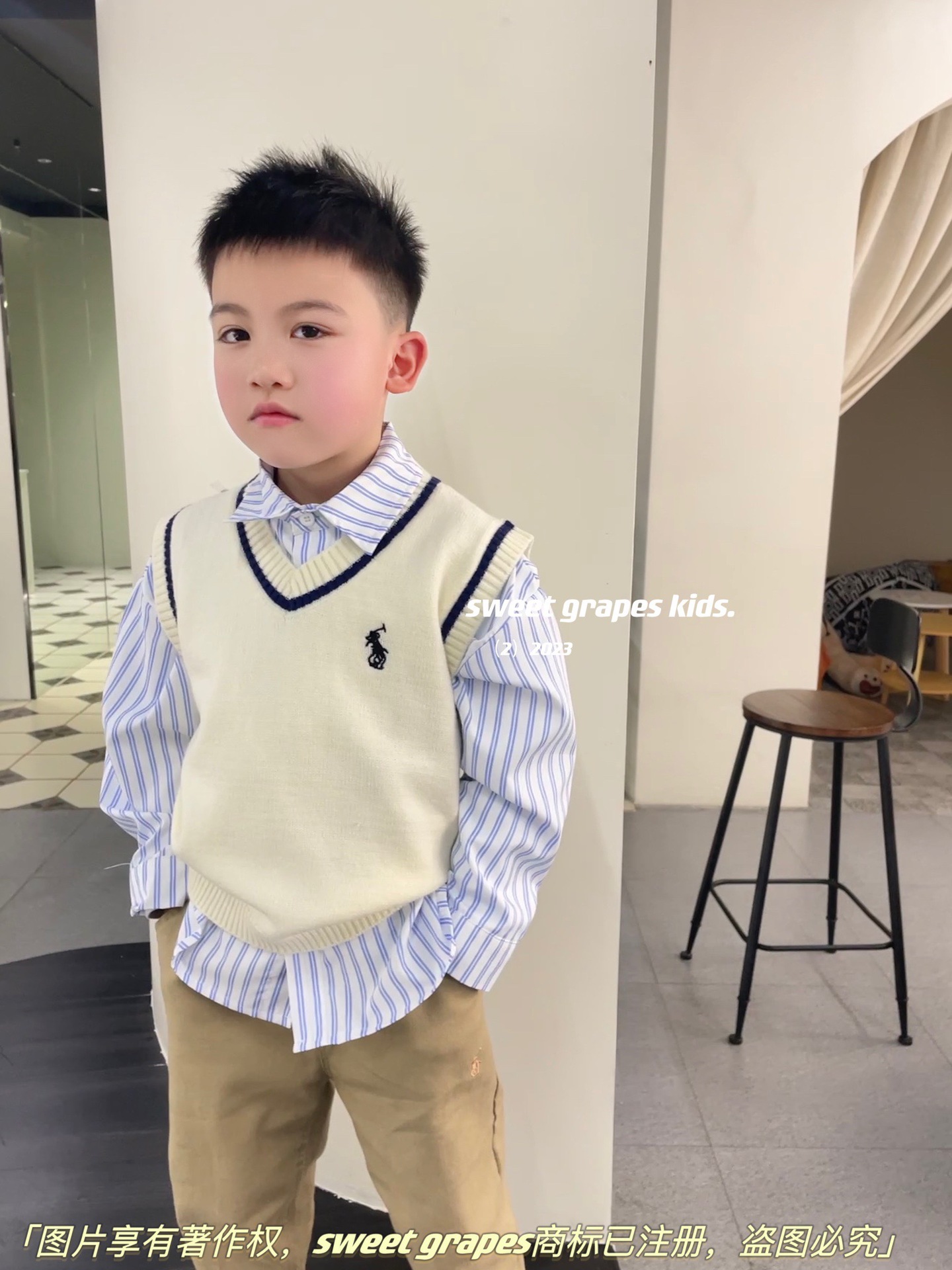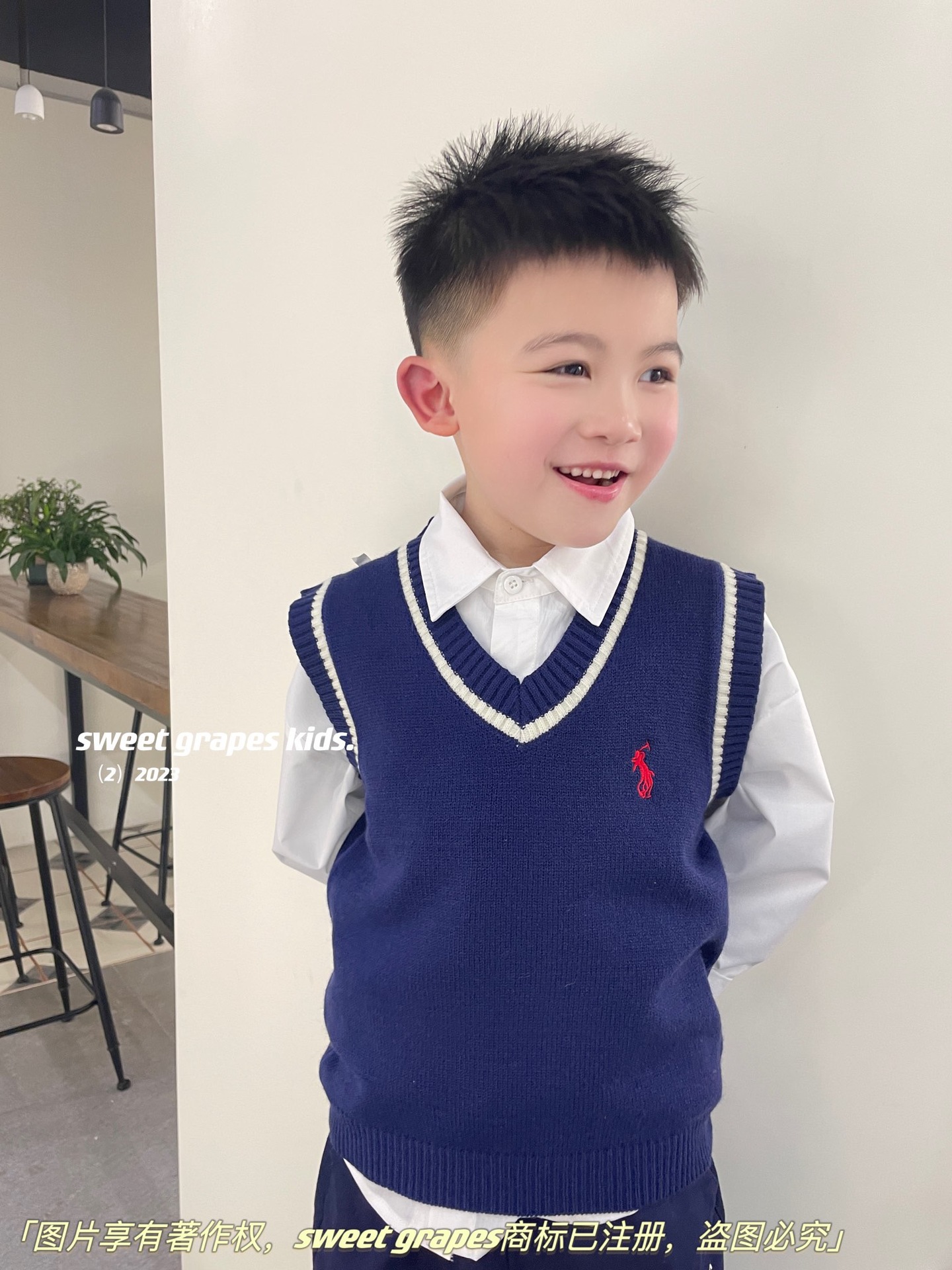 2023 년 일본 구매 랄프 보이즈 포니 쓰리피스 울 조끼 + 긴팔 셔츠 + 캐주얼 팬츠 아동복스토어 가기