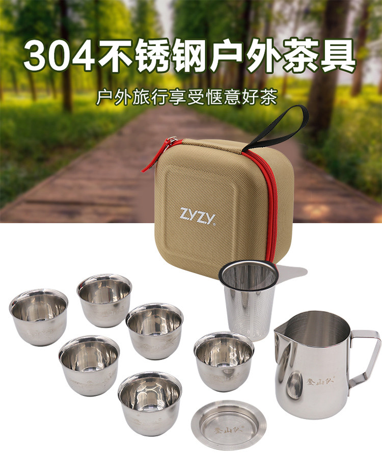 도매 304 스테인레스 스틸 쿵푸 야외 차 세트 휴대용 zyzy 등산 팀 차 필터 냄비 여행 와일드 캠핑
