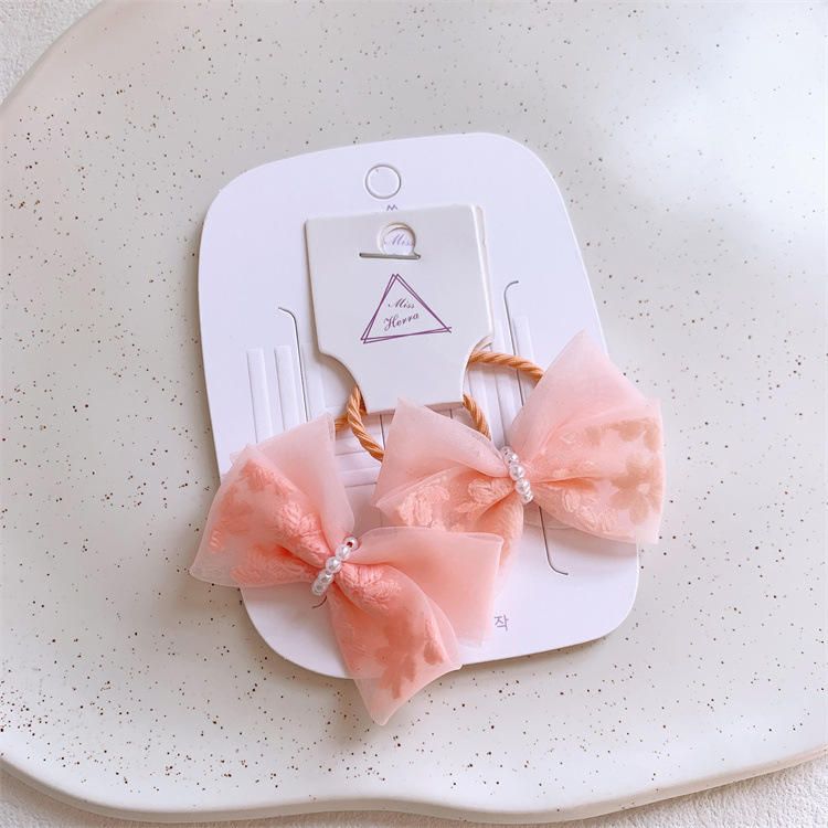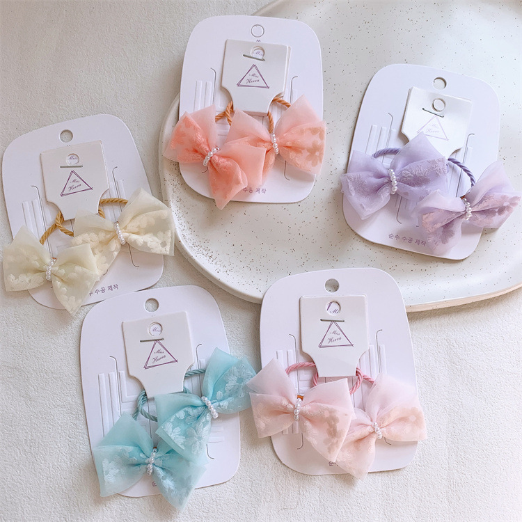 이른 봄 새로운 어린이 헤어 액세서리 메쉬 보우 헤어 링 여아 헤어 스트랩 고무 밴드 헤어 로프 아기의 머리 밧줄