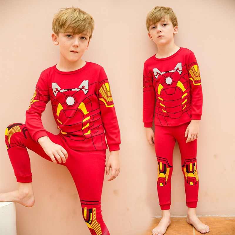 어린이 스파이더 맨 잠옷 소년 가을 긴 소매 면 작은 소년 아이언 맨 만화 봄과 가을 홈 의류 세트