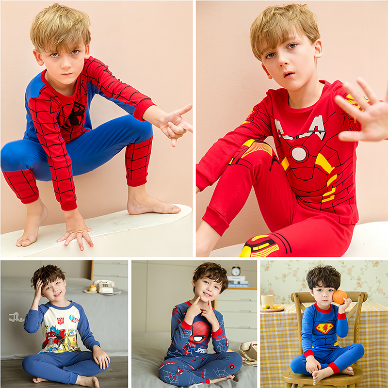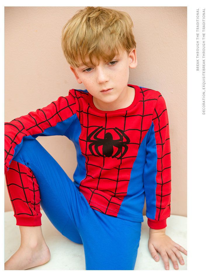 어린이 스파이더 맨 잠옷 소년 가을 긴 소매 면 작은 소년 아이언 맨 만화 봄과 가을 홈 의류 세트스토어 가기
