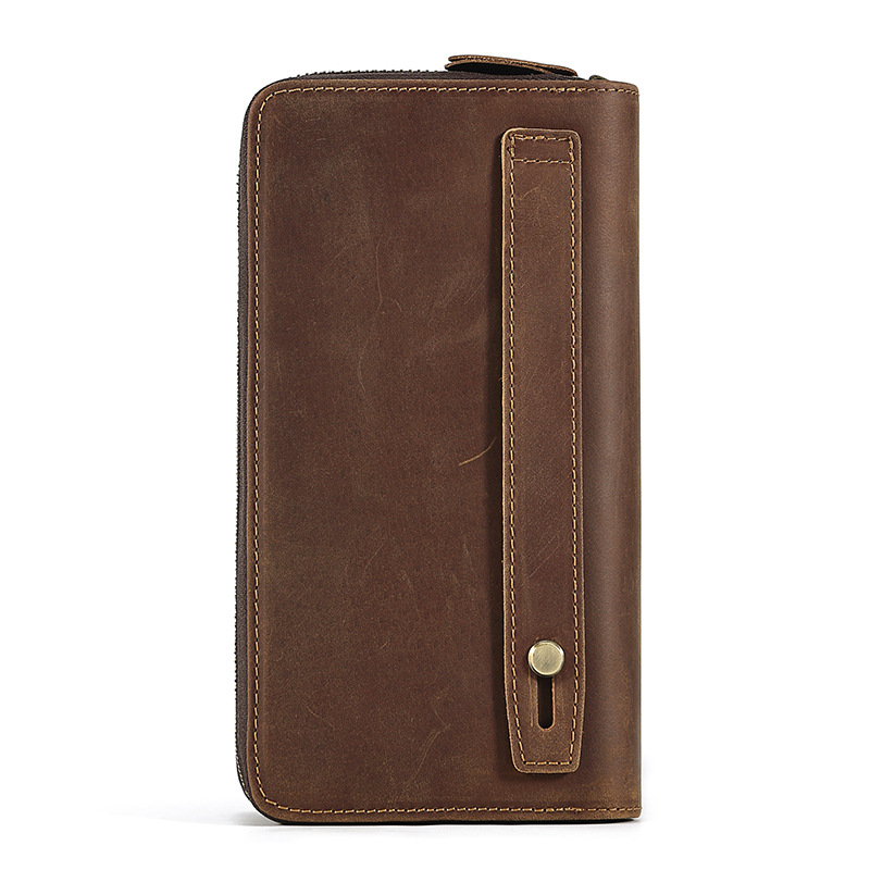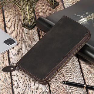 새로운 정품 가죽 장지갑 남성용 카드지갑, 남성용 지퍼 멀티 카드 슬롯 핸드백, 크레이지 호스 가죽 대용량 클러치백스토어 가기