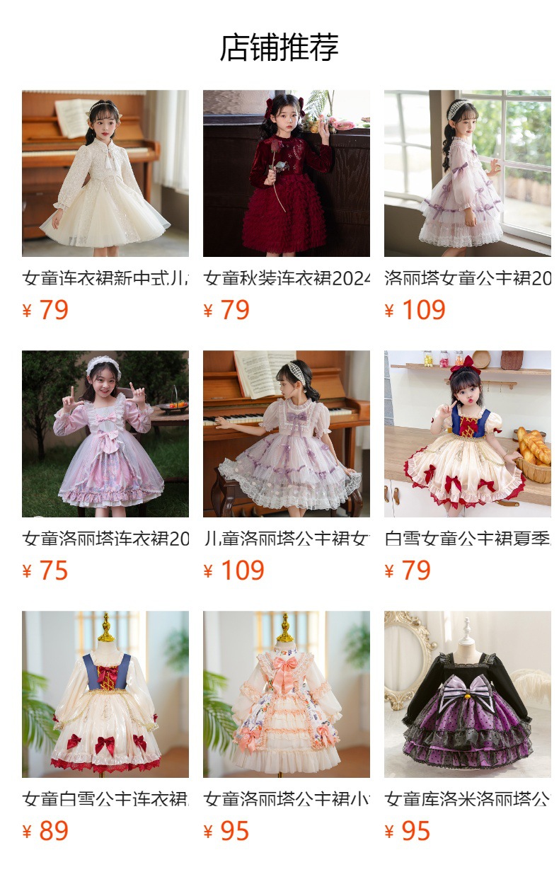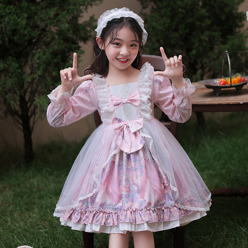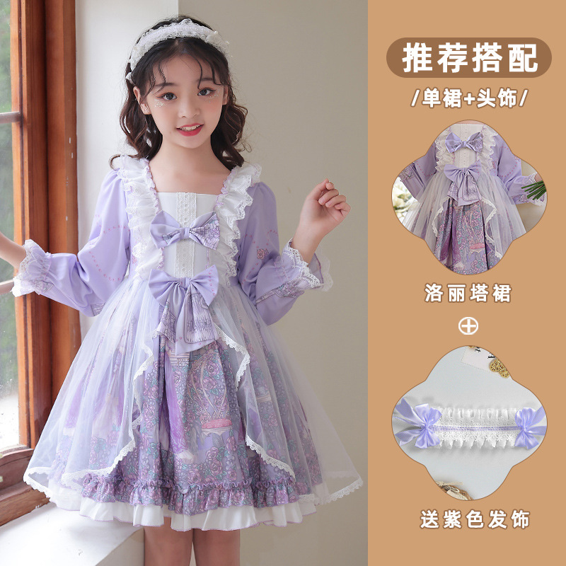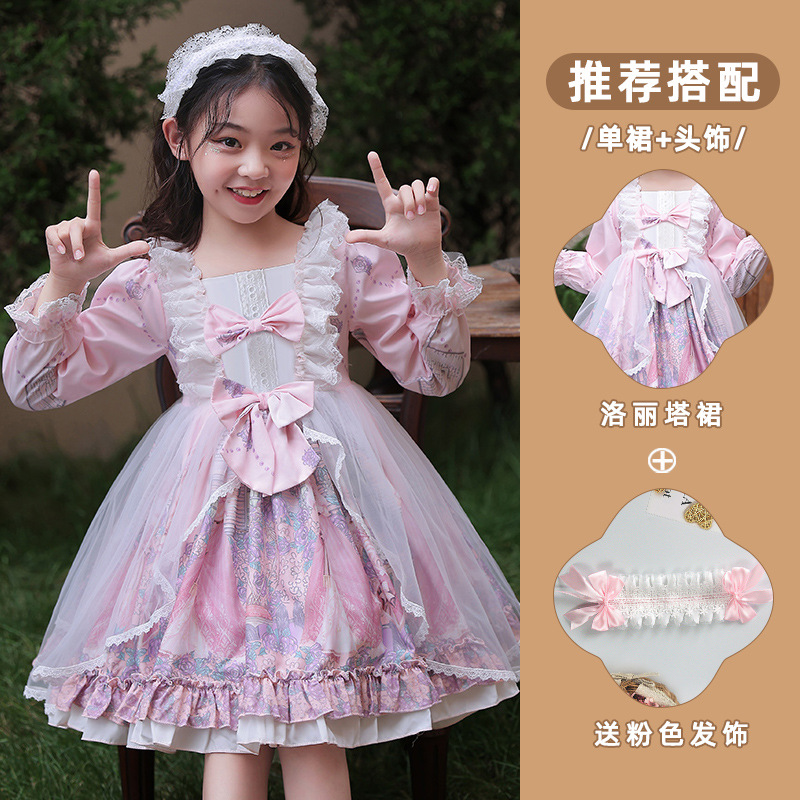 소녀 로리타 원피스 여름 2024 새로운 어린이 서양식 공주 로리타 원피스 가을과 겨울 치마스토어 가기