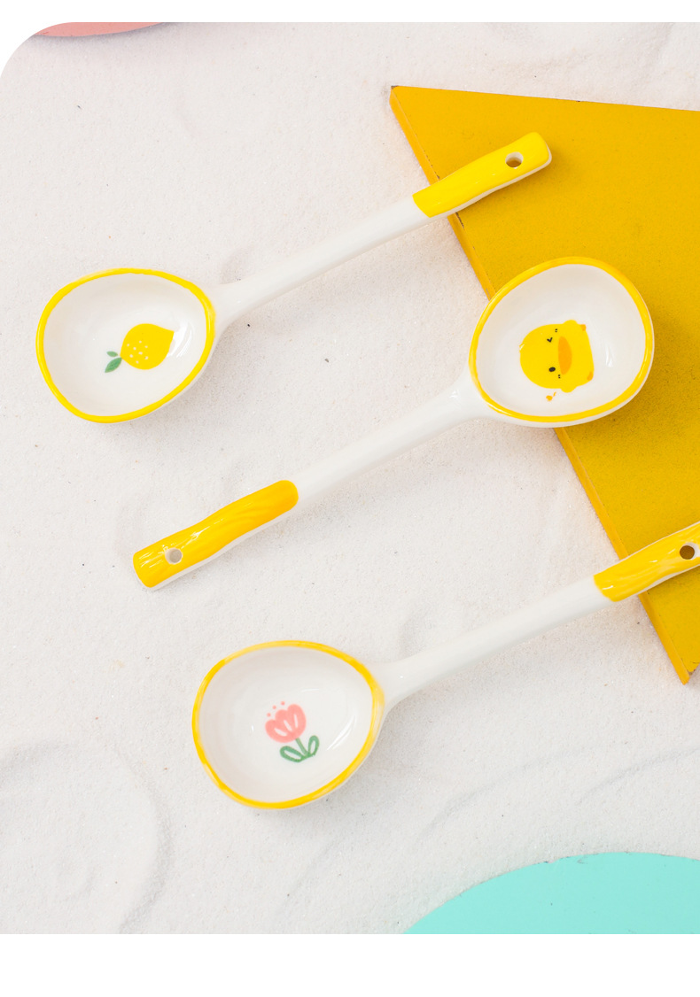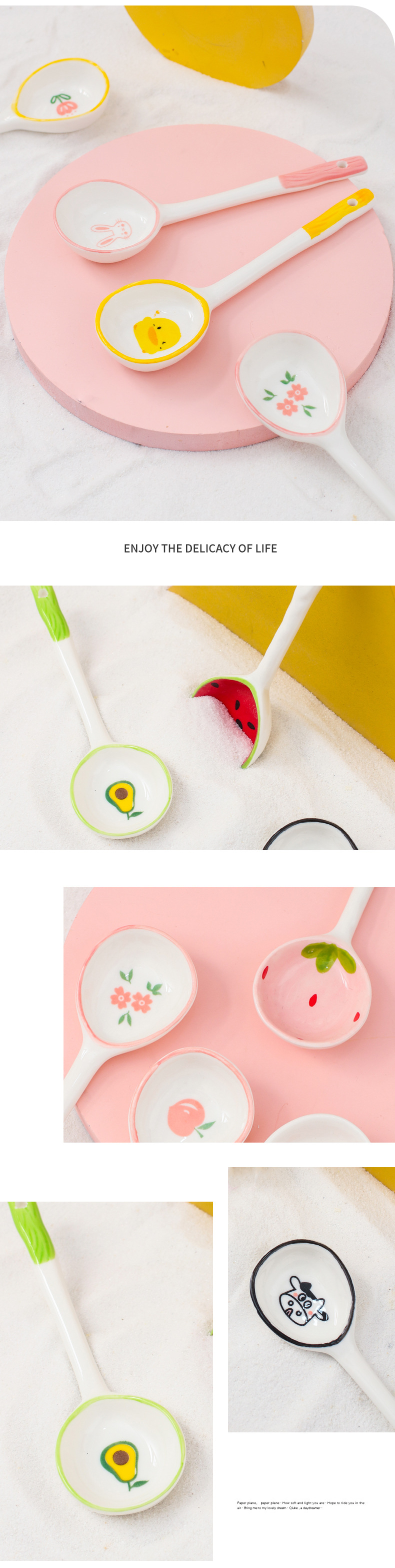 만화 과일 세라믹 스푼 가정용 손으로 그린 조미료 스푼 긴 손잡이 고가 어린이 스프 스푼 귀여운 음식 도매