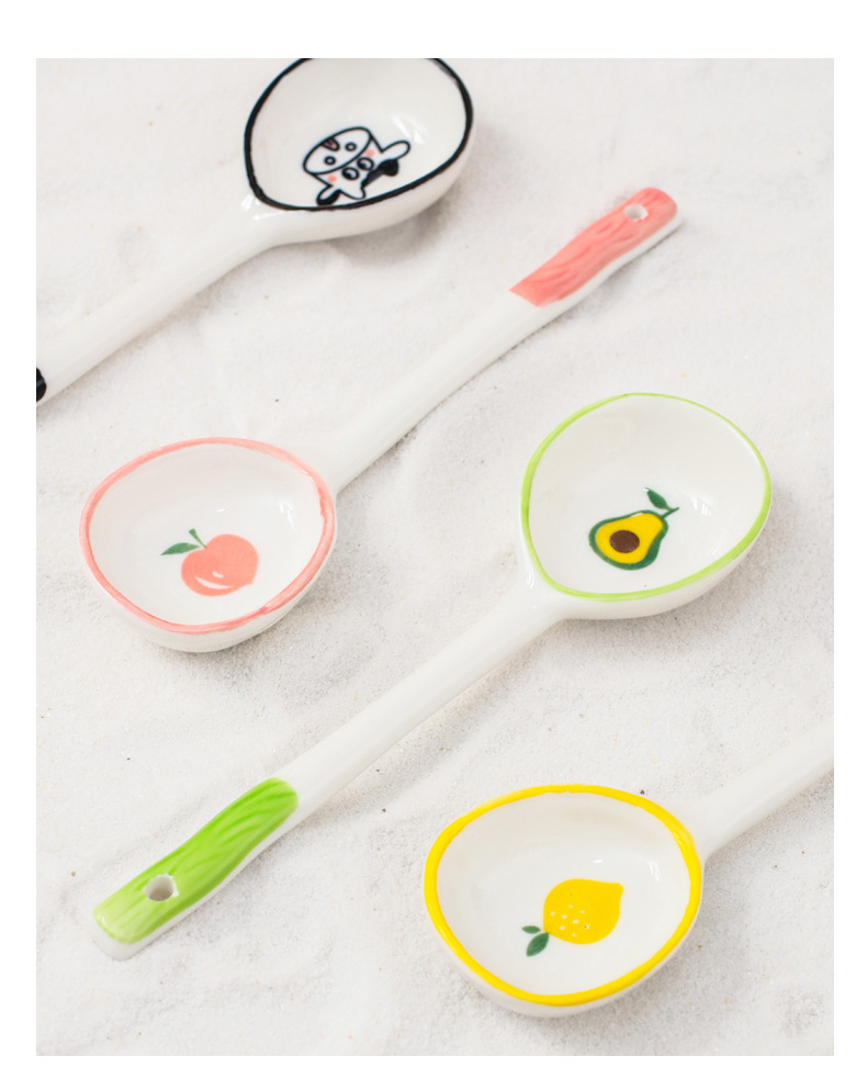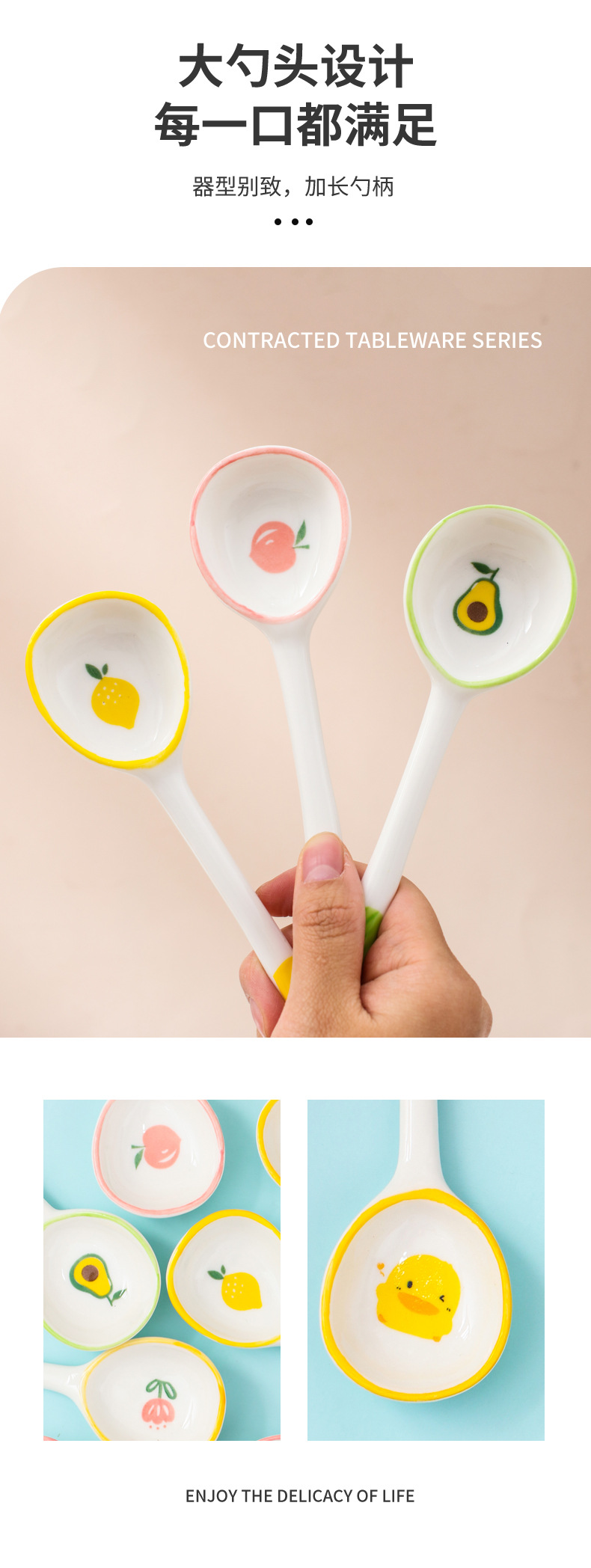 만화 과일 세라믹 스푼 가정용 손으로 그린 조미료 스푼 긴 손잡이 고가 어린이 스프 스푼 귀여운 음식 도매스토어 가기