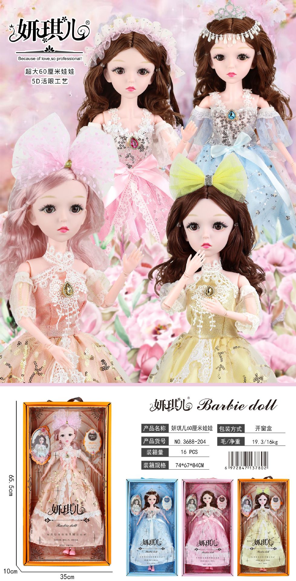 • 3688-245 절묘한 공주 인형 [3가지 색상 랜덤]
