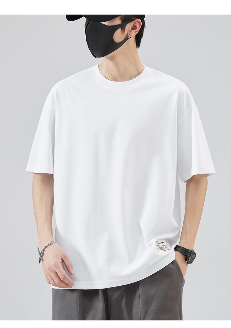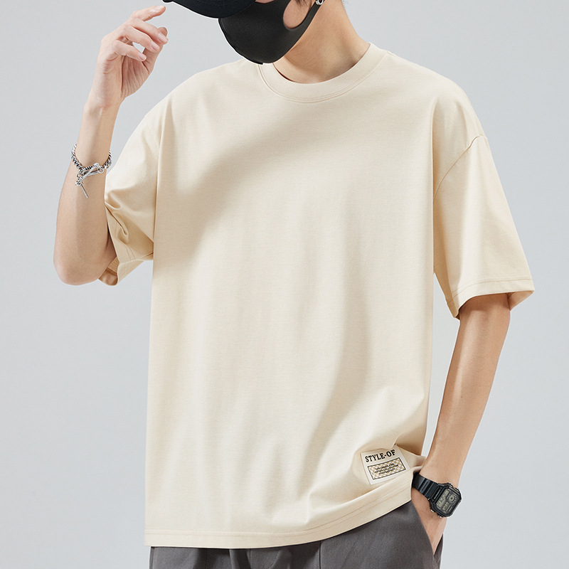 2023 여름 남성용 아이스 실크 쿨 코튼 라운드 넥 반팔 티셔츠 청소년 트렌디 느슨한 편안한 품질 탑