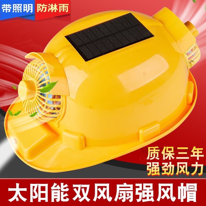 태양광 팬 안전모 여름 건설 현장 작업 야외 차양 자외선 차단 냉각 조명 헬멧 유리섬유