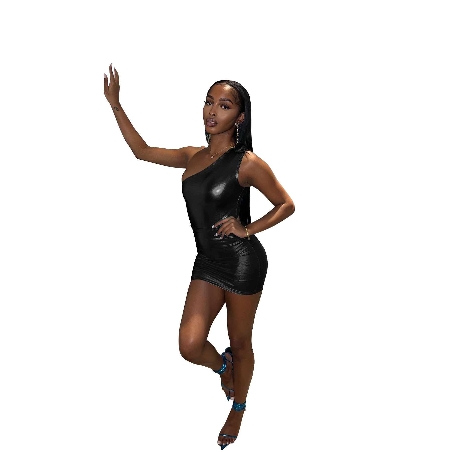 FA8335 유럽과 미국 스타일 여성의 새로운 밝은 어깨 섹시 민소매 점프 수트 + 짧은 치마 세트스토어 가기