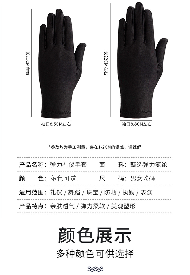 스판덱스 봄 여름 남녀 화이트 에티켓 얇은 스트레치 장갑 댄스 운전 검은 땀 흡수 통기성 선 스크린 장갑