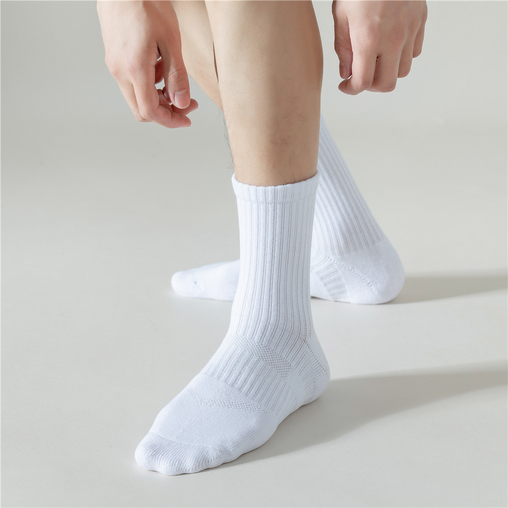 남성용 농구 양말 중간 길이 미국식 하이탑 스포츠 러닝 면 순수 타월 밑창 두꺼운 남성용 검정 겨울 양말