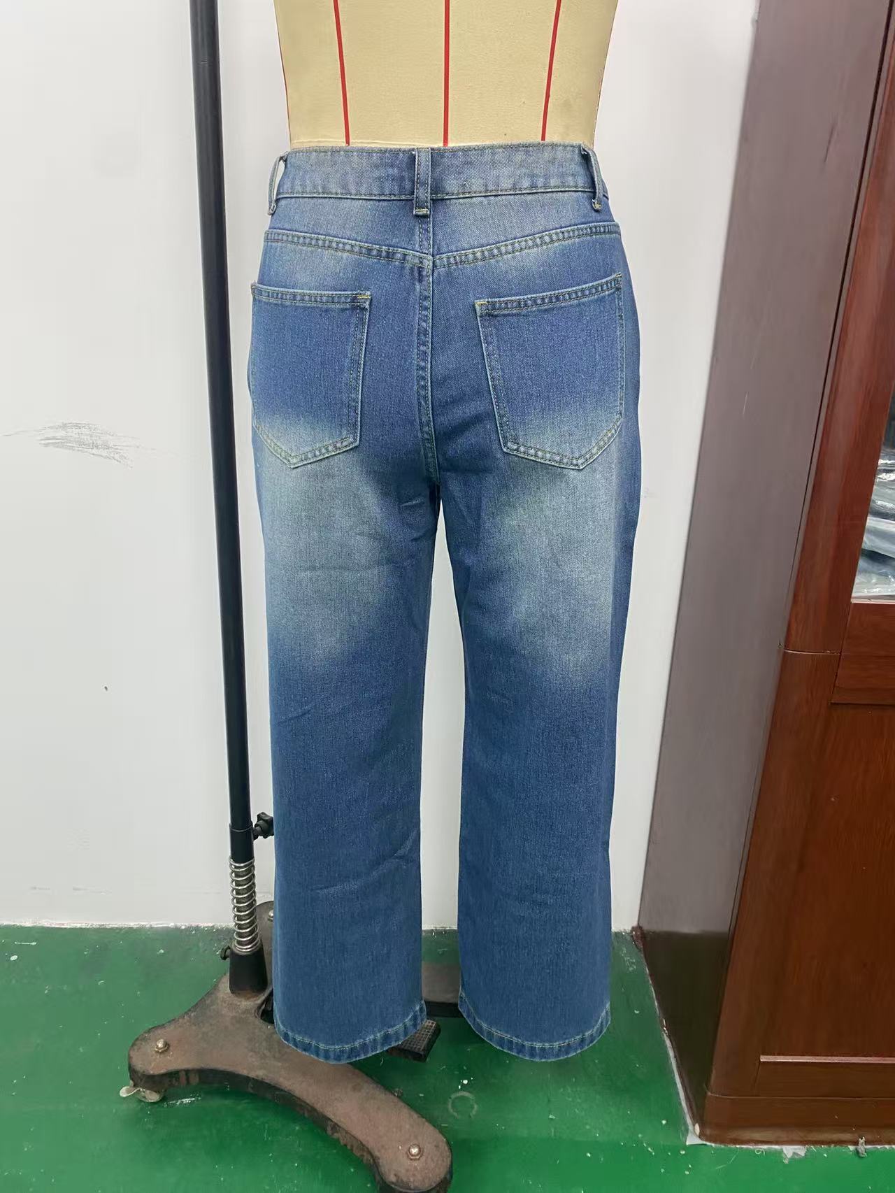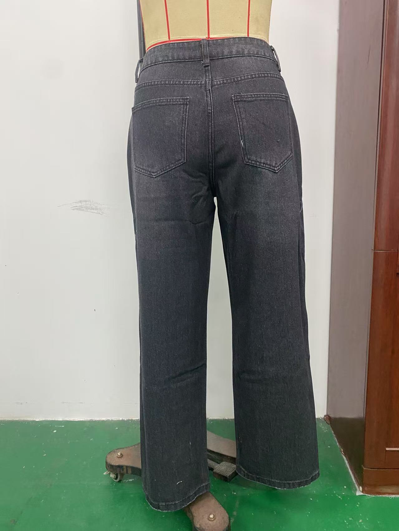 유럽풍 레트로 패션 캐주얼 스트레이트 와이드 팬츠 여성용 아마존 독립 사이트 해외 무역 여성 인기 데님 팬츠