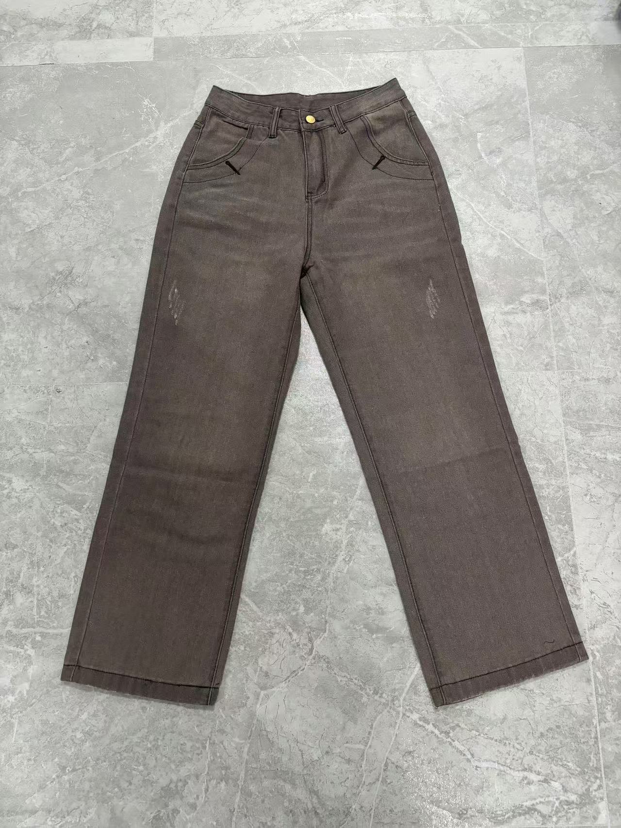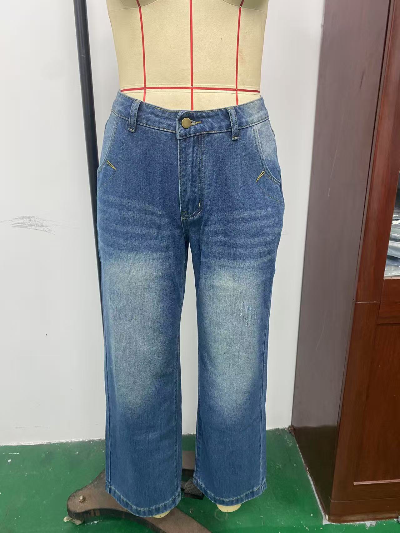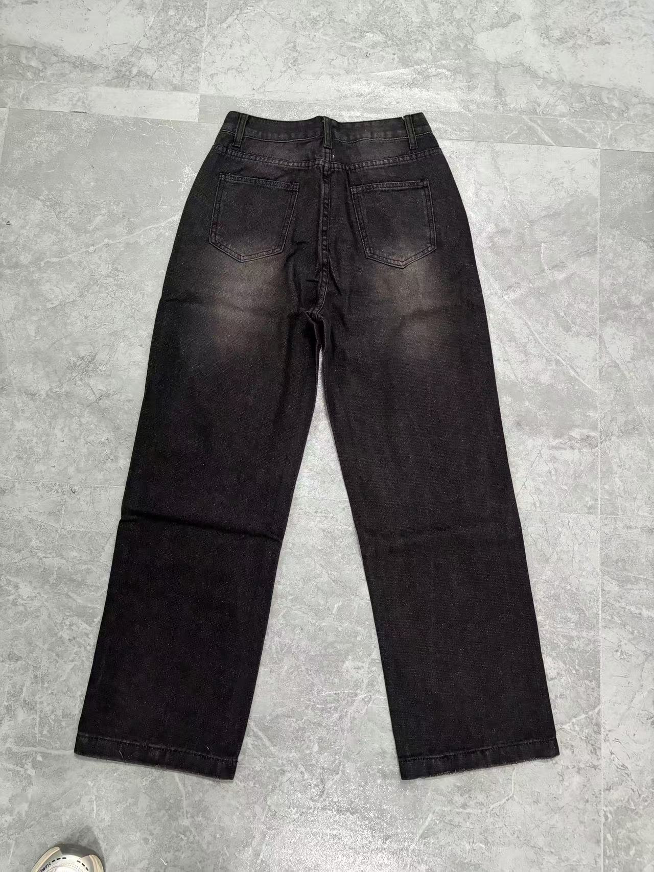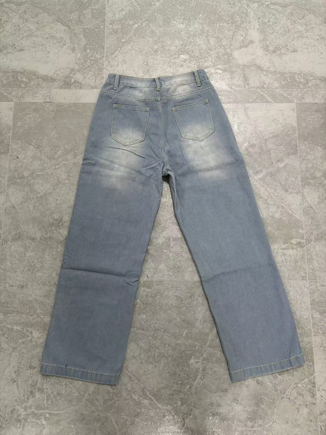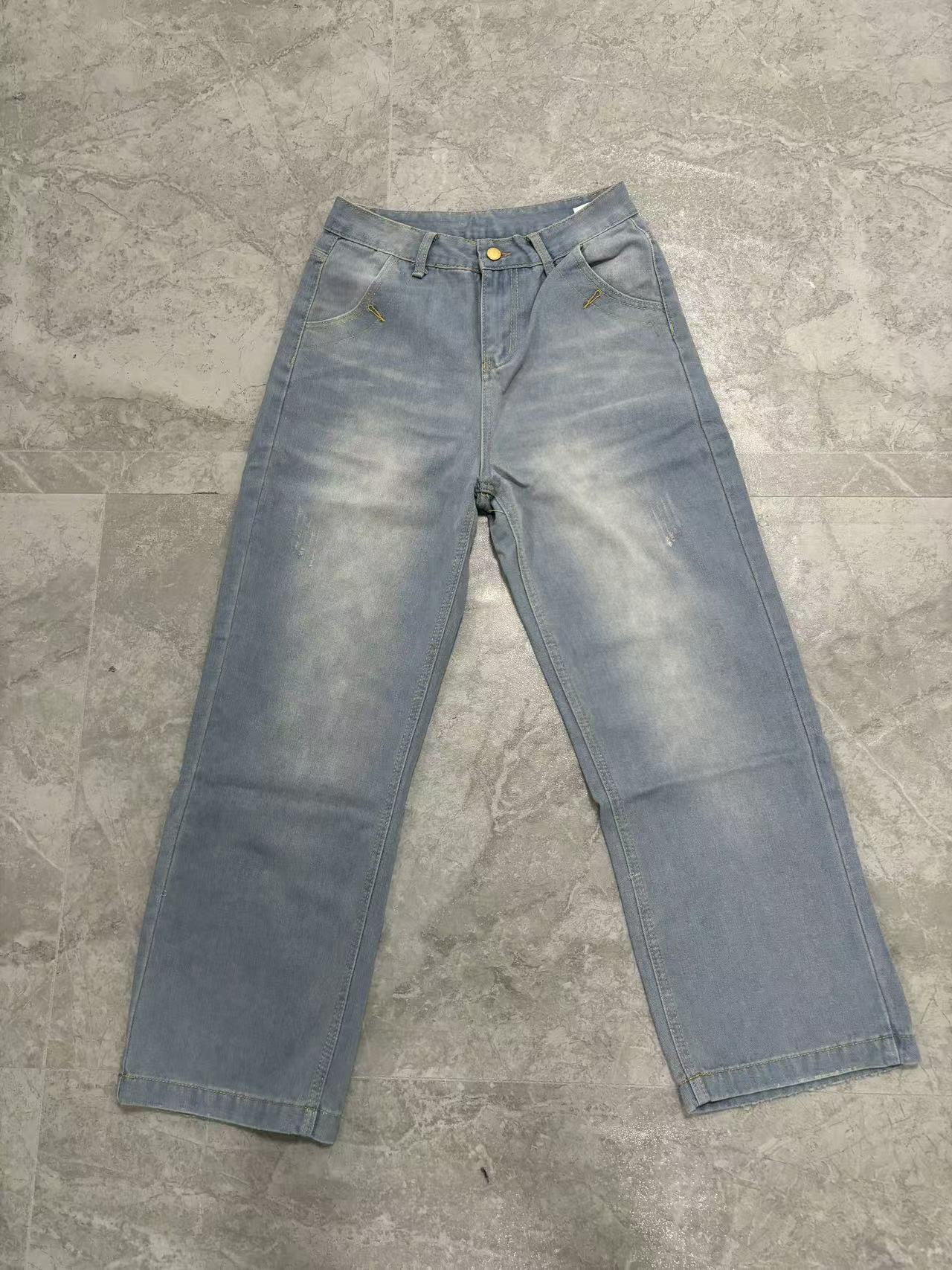 유럽풍 레트로 패션 캐주얼 스트레이트 와이드 팬츠 여성용 아마존 독립 사이트 해외 무역 여성 인기 데님 팬츠스토어 가기