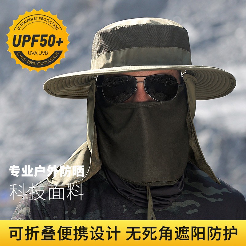 여름 태양 모자 남성과 여성의 야외 낚시 통기성 어부의 모자 목 보호 이동식 대형 챙 빈 탑 자외선 차단제 모자스토어 가기