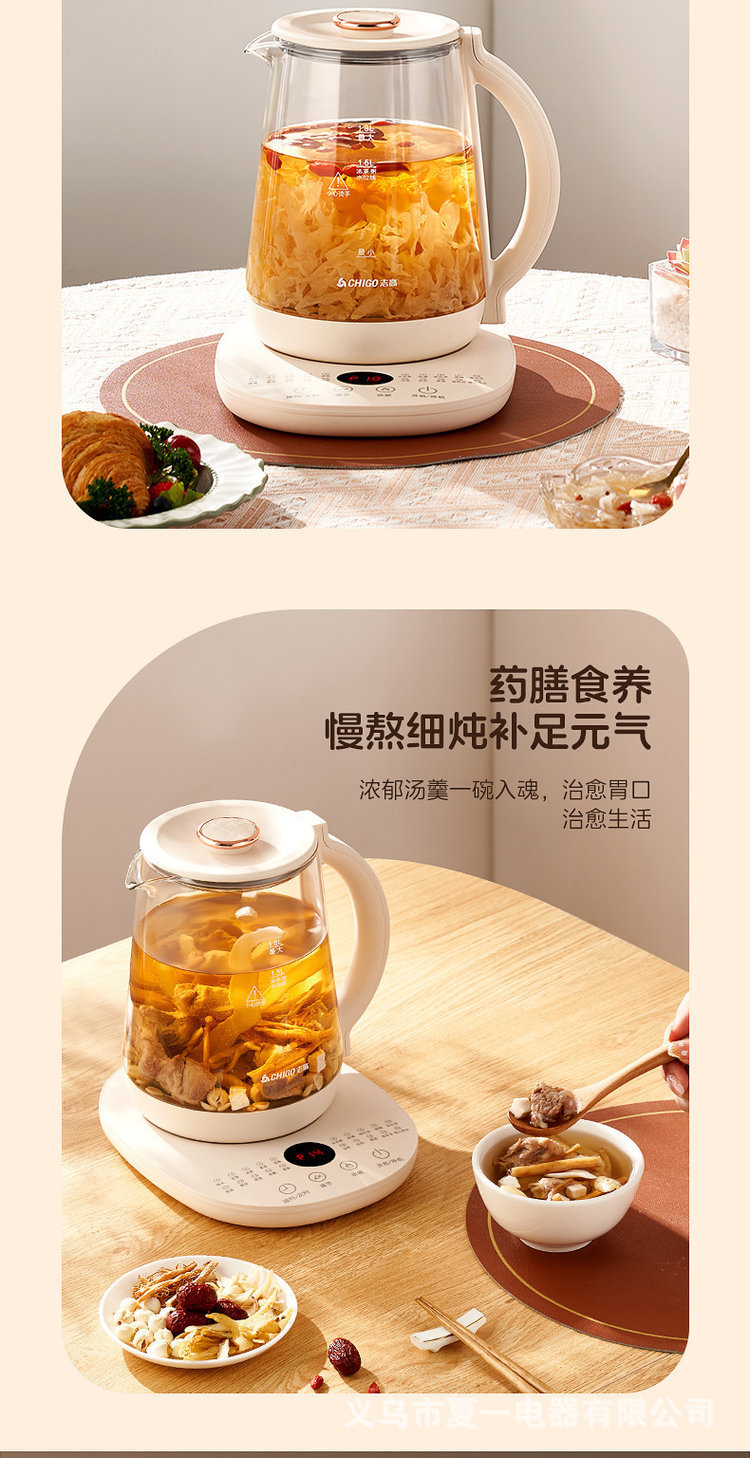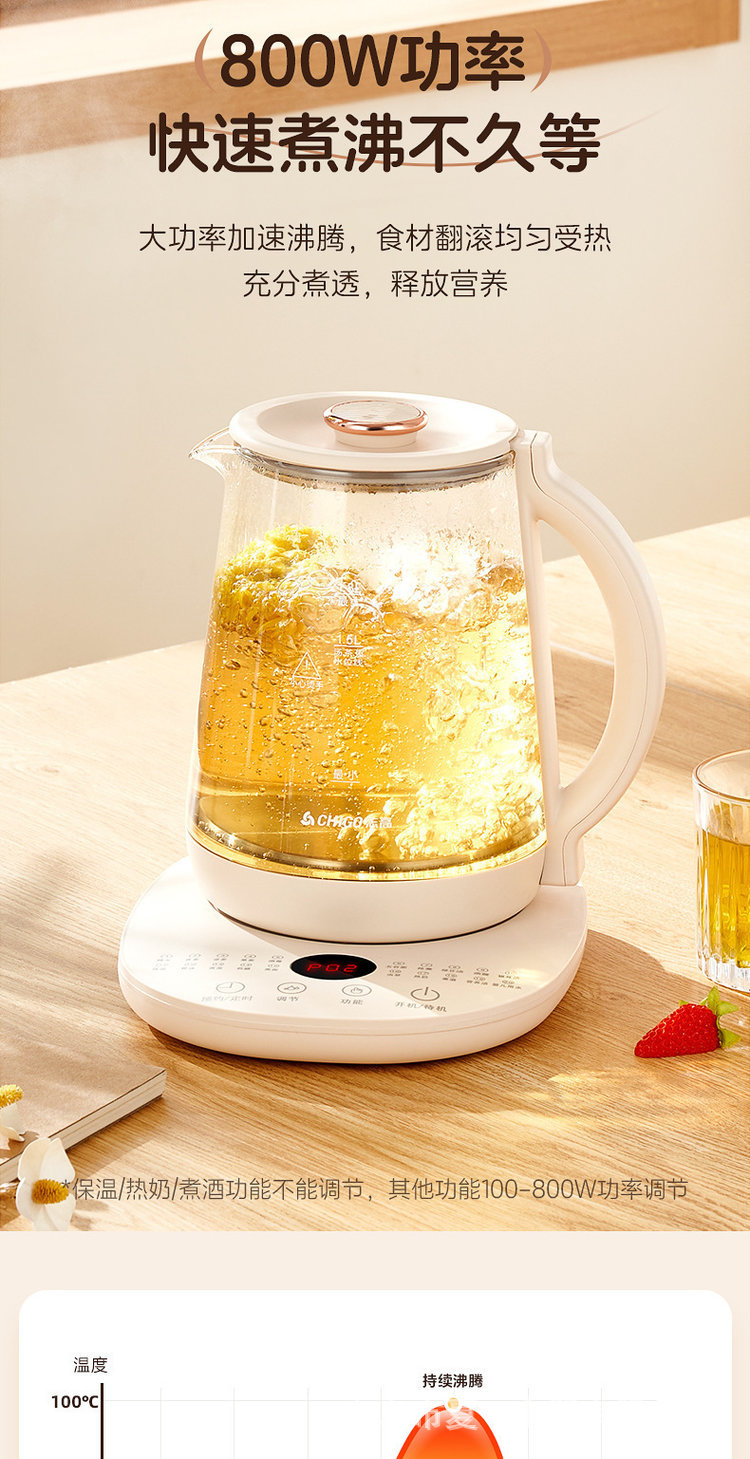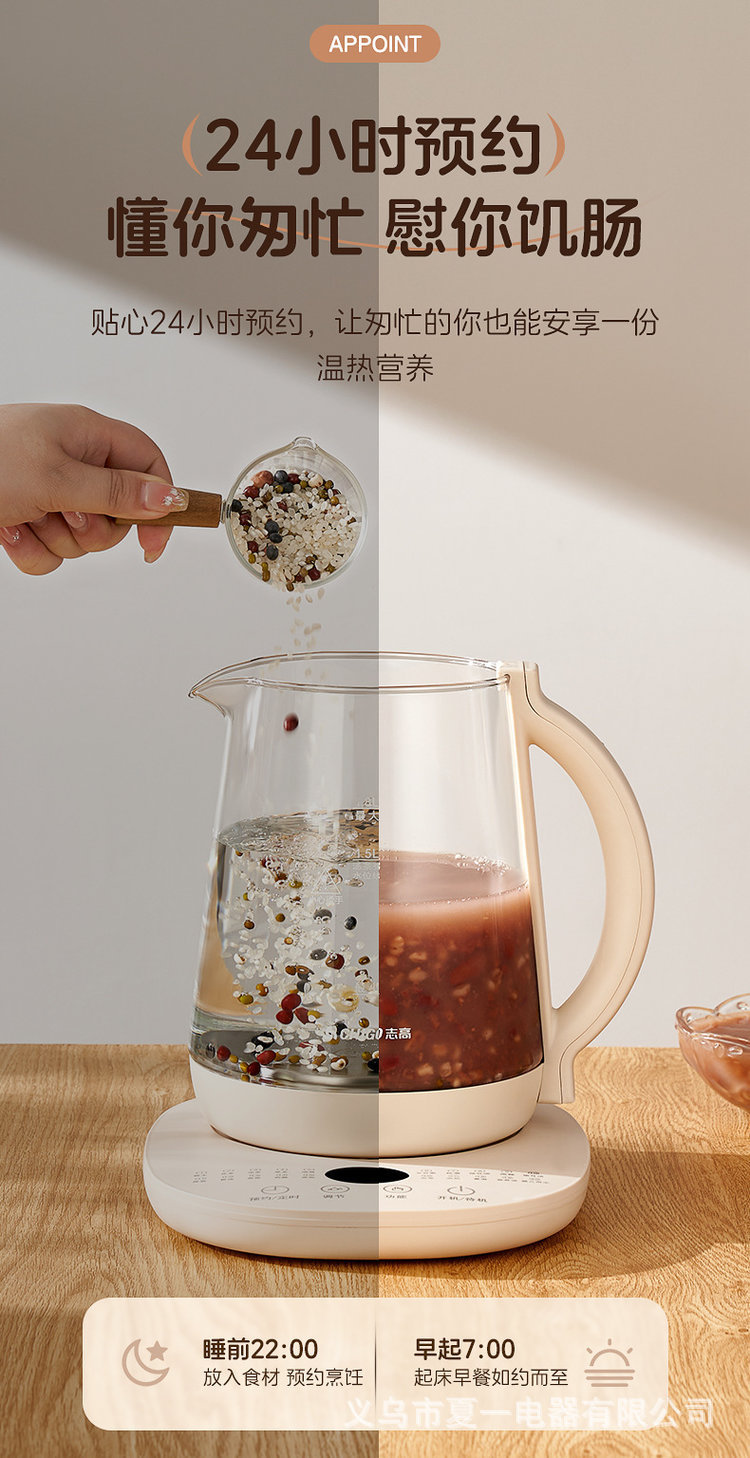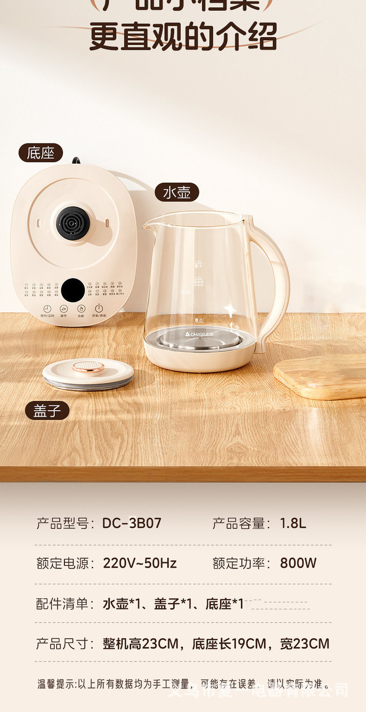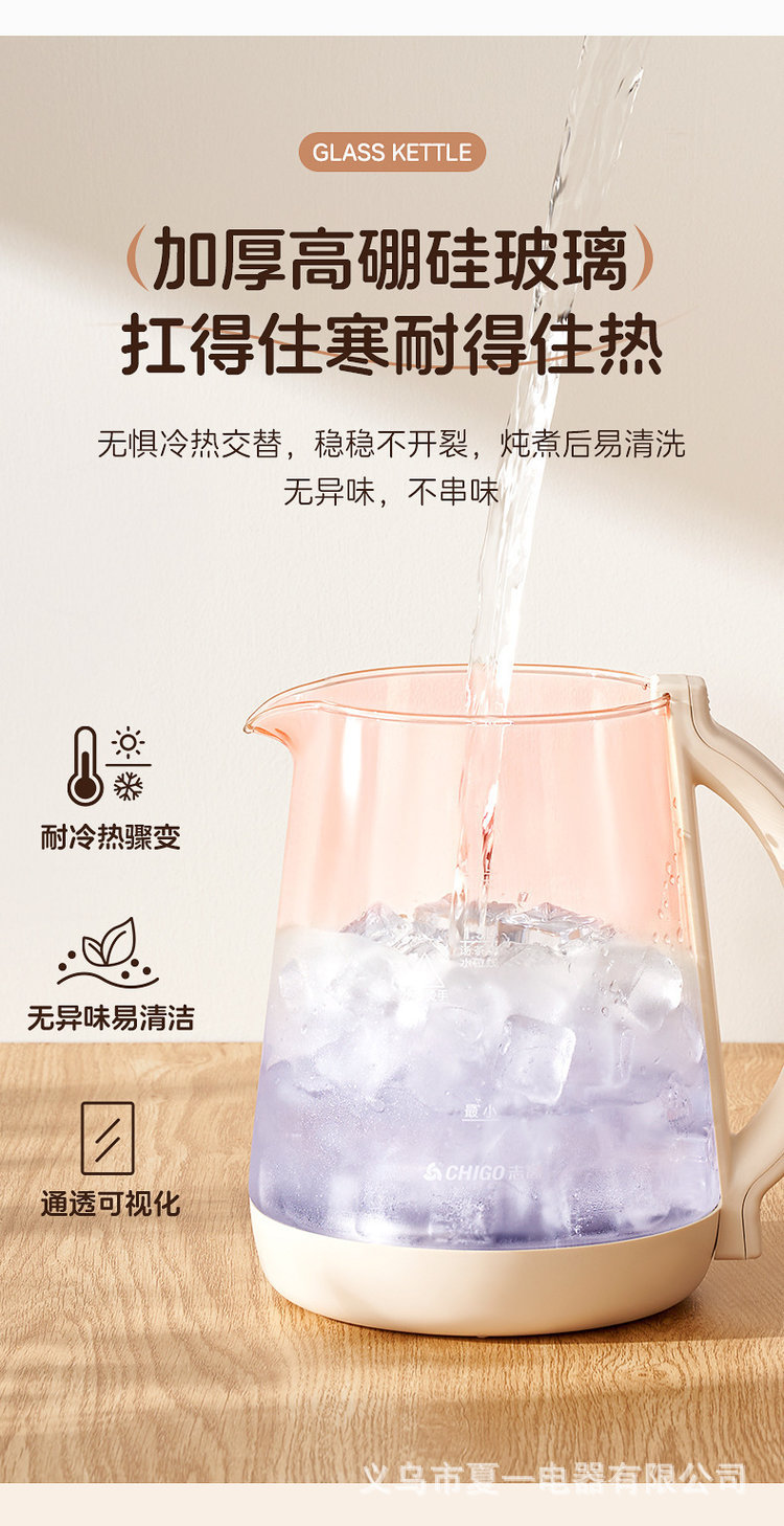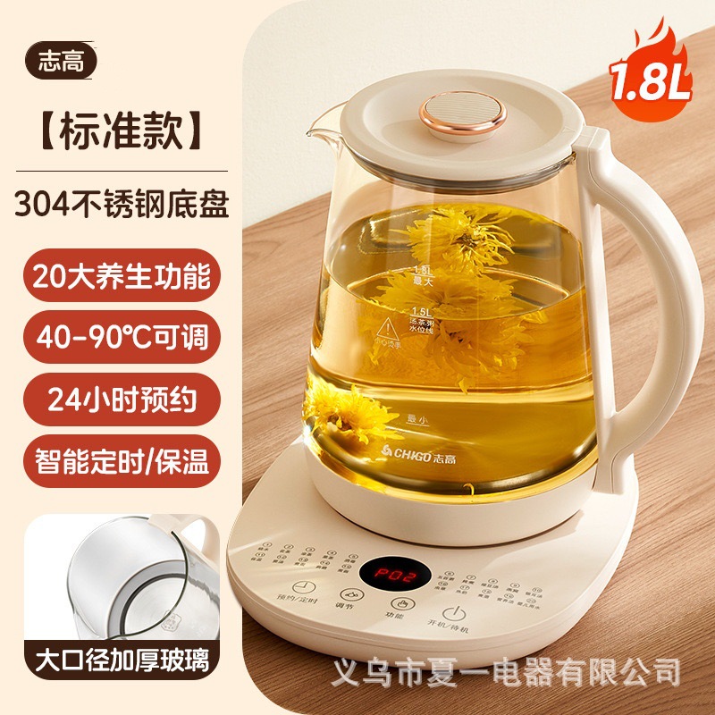 지하오 건강 주전자, 완전 자동 두꺼운 유리 주전자, 다기능 차 끓이기 기구, 전기 주전자, 꽃차 주전자, 약초 끓이기 주전자