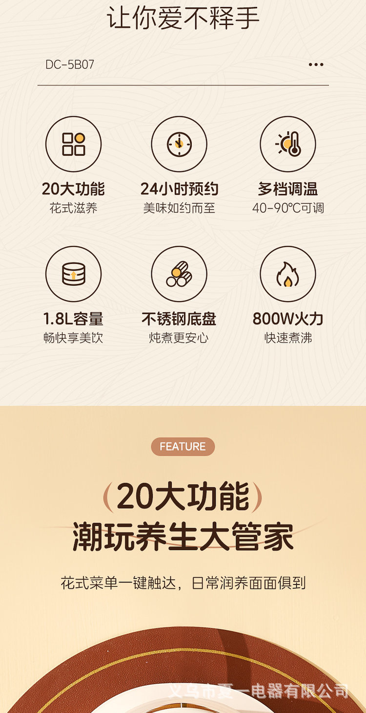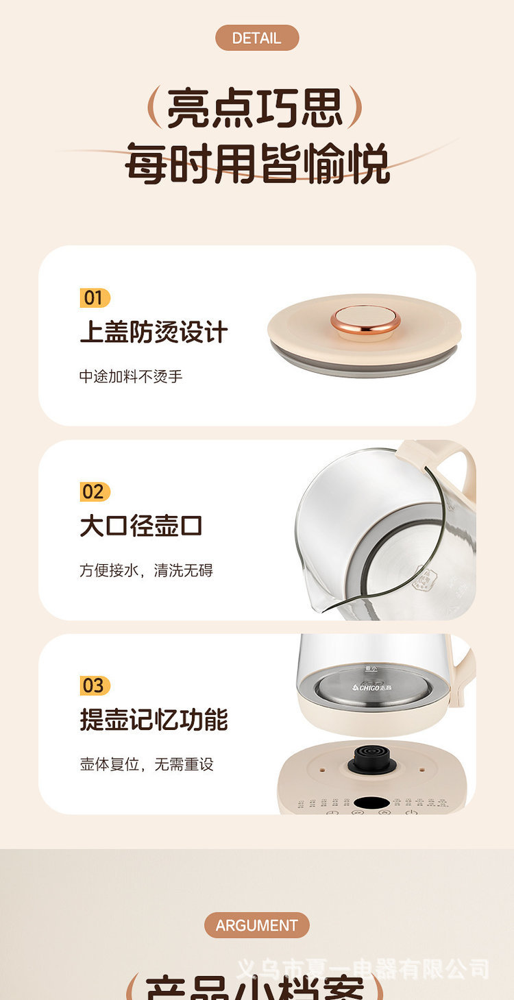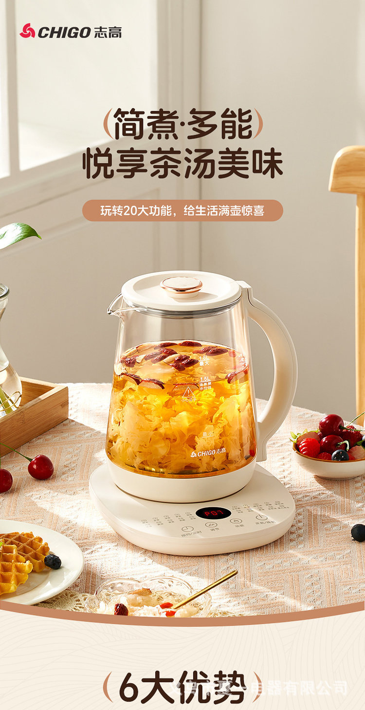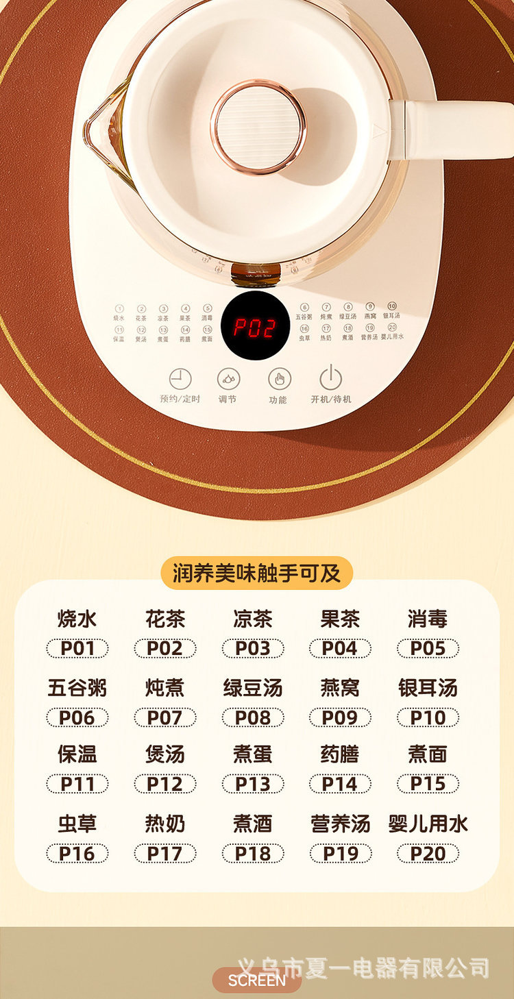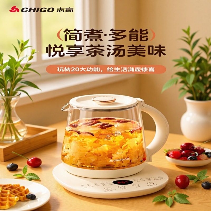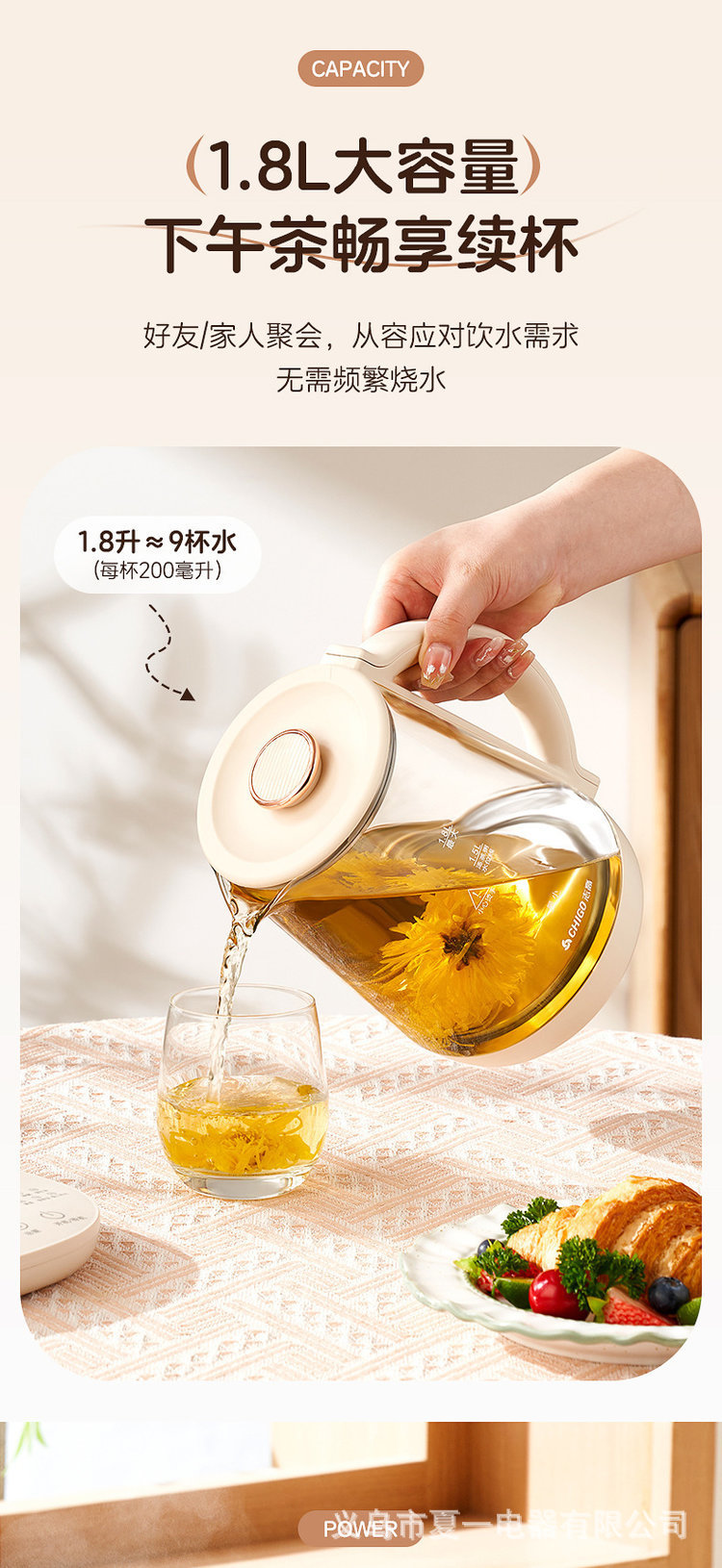 지하오 건강 주전자, 완전 자동 두꺼운 유리 주전자, 다기능 차 끓이기 기구, 전기 주전자, 꽃차 주전자, 약초 끓이기 주전자
