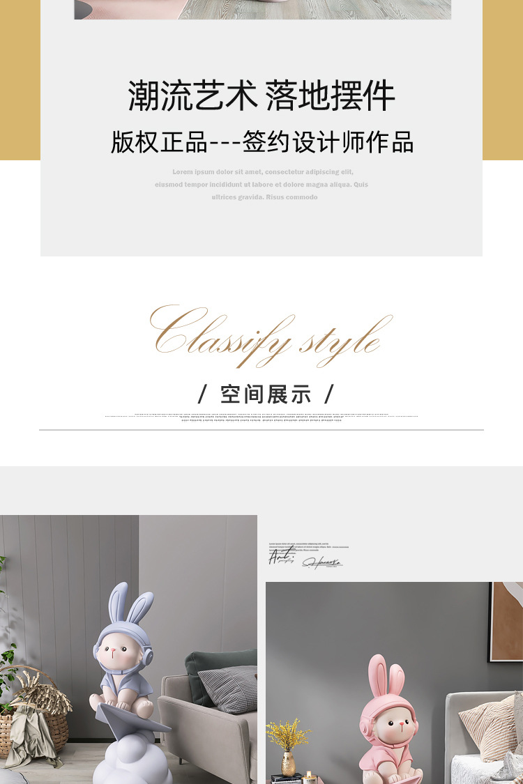집들이 선물 토끼 대형 바닥 장식 홈 액세서리 거실 TV 캐비닛 소파 환영 조각 이동스토어 가기