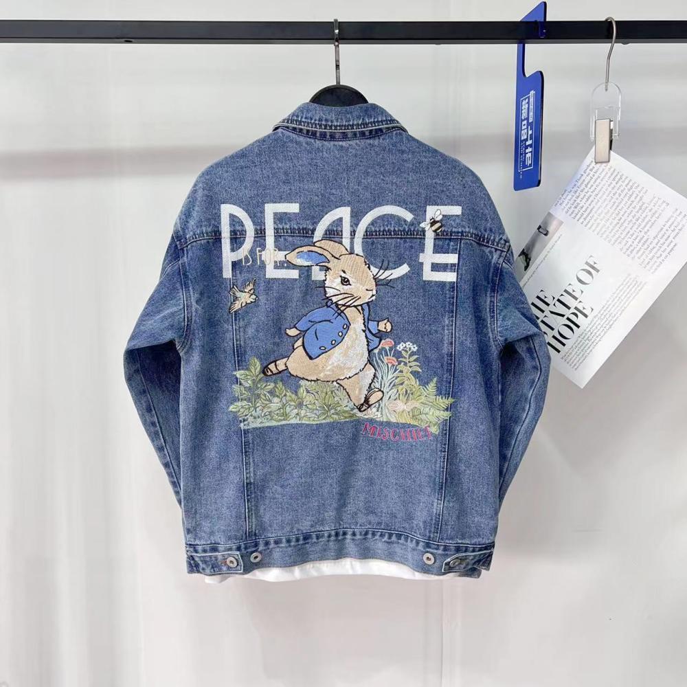 2024 남성 봄 가을 데님 재킷 토끼 문자 자수 캐주얼 블루 데님 재킷 트렌디 2885