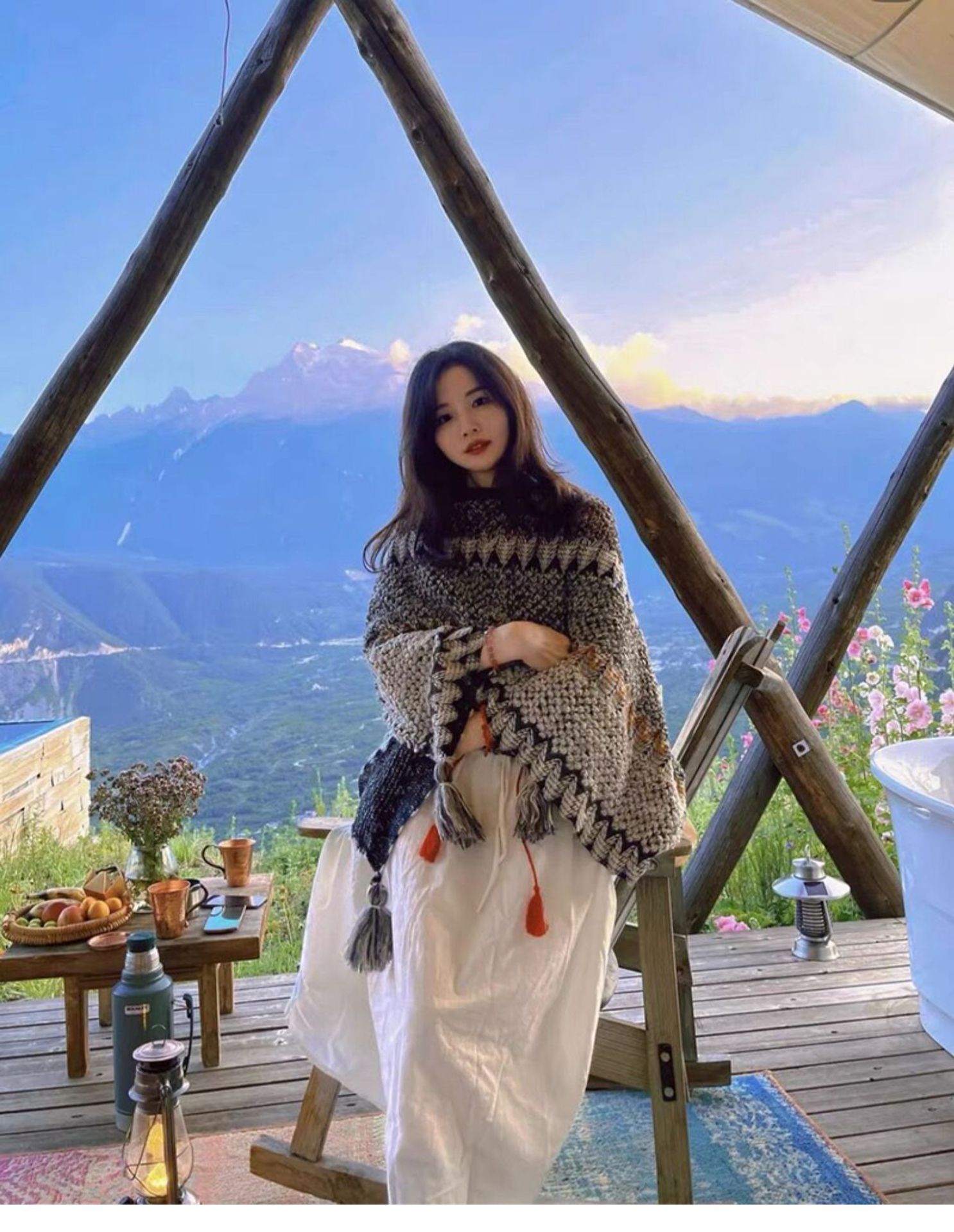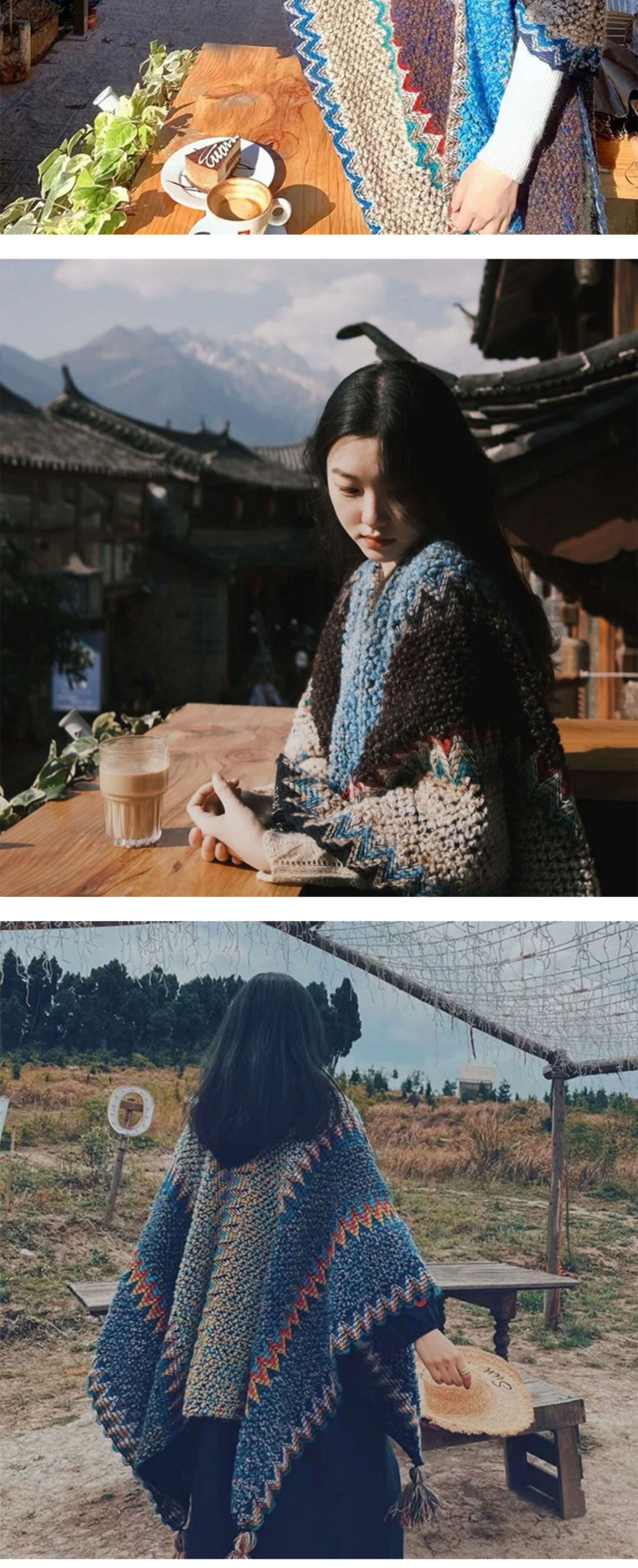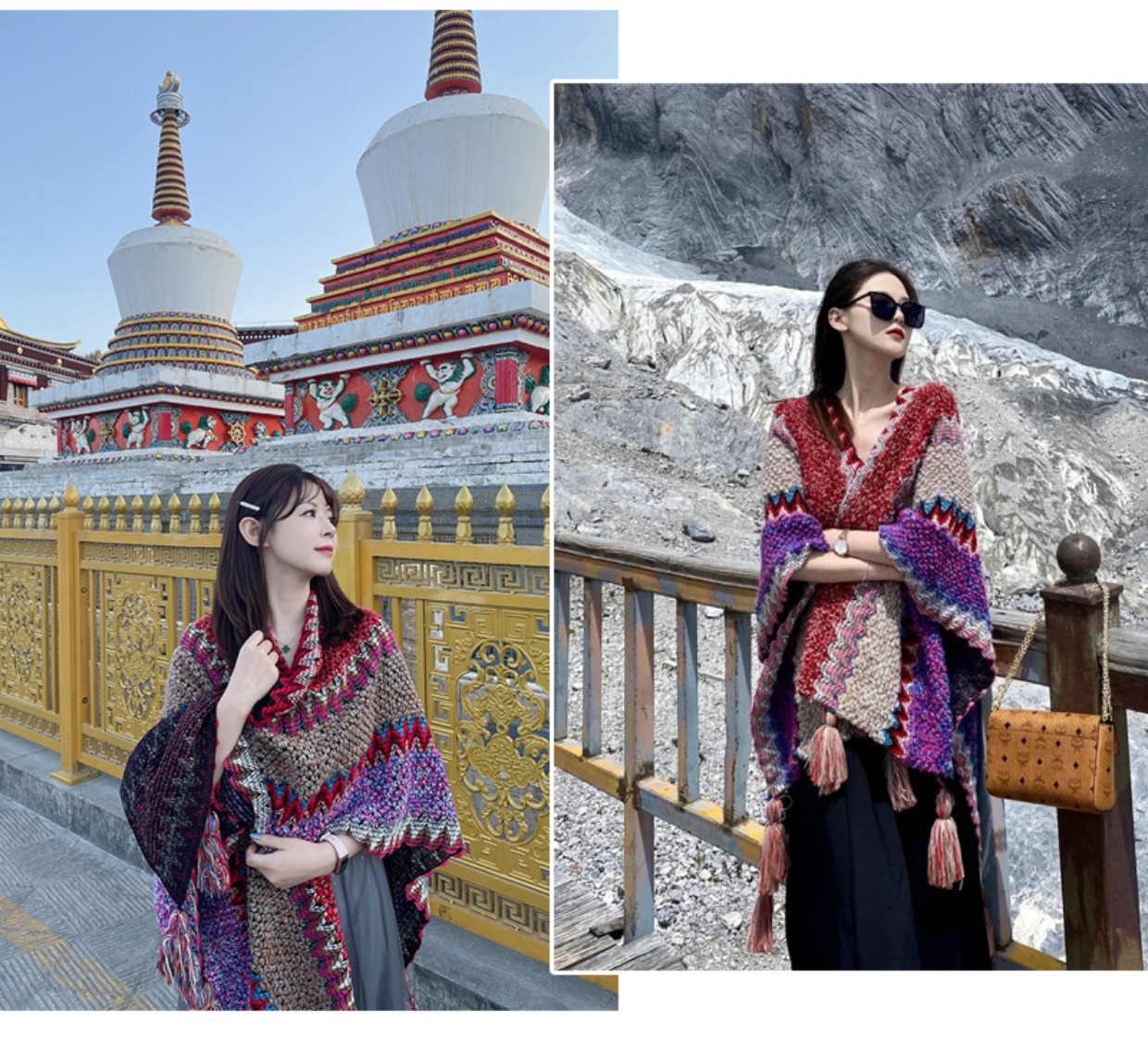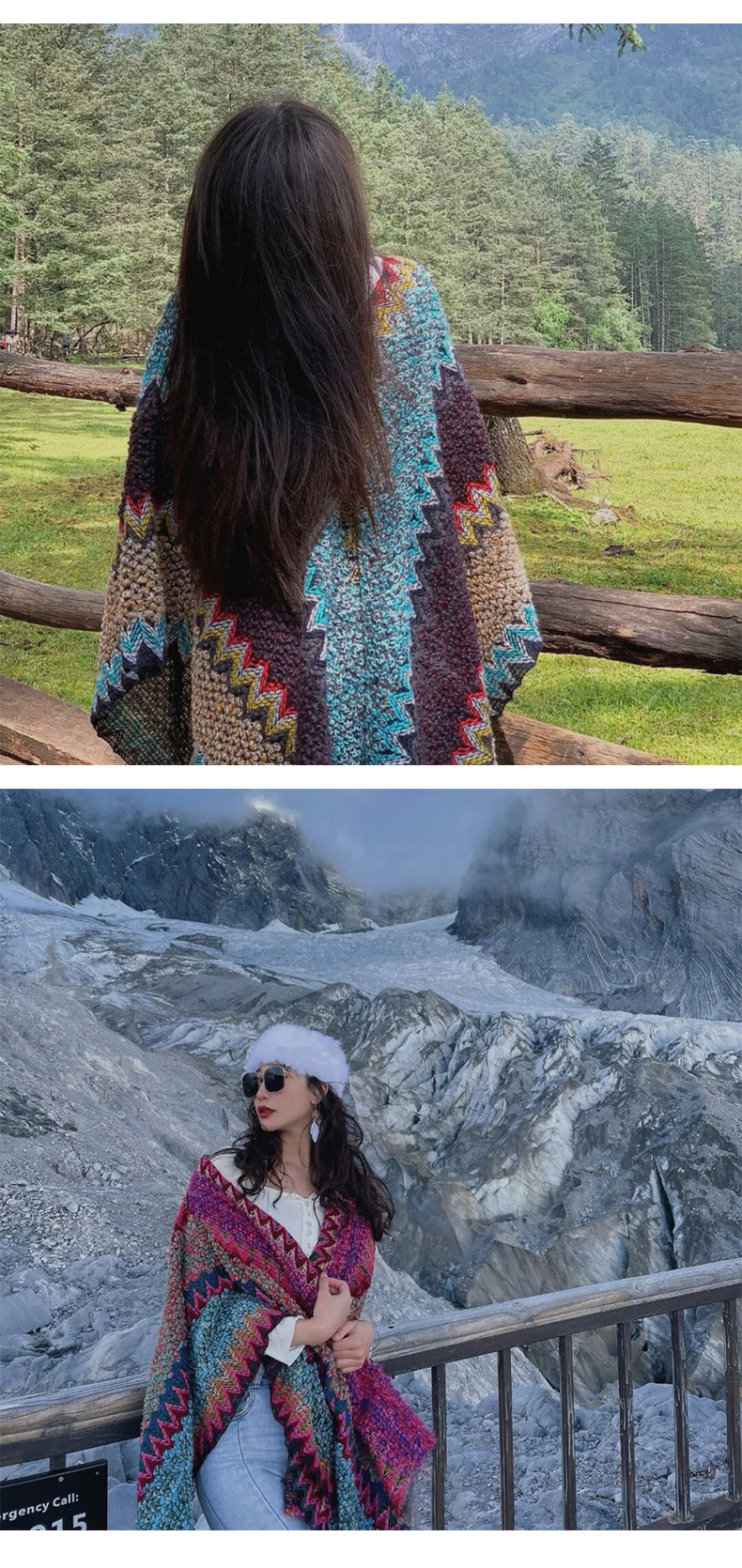 에스닉 스타일 목도리 Lijiang 윈난 달리 여행 사진 차카 솔트 레이크 두꺼운 망토 외부 따뜻한 망토 공장스토어 가기