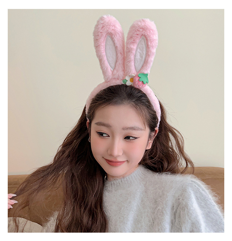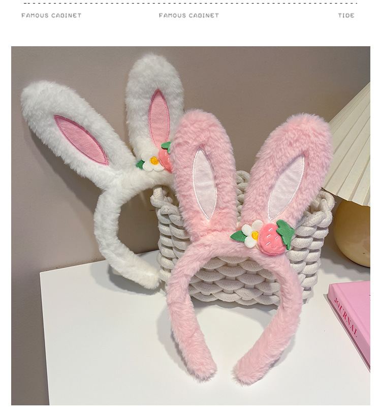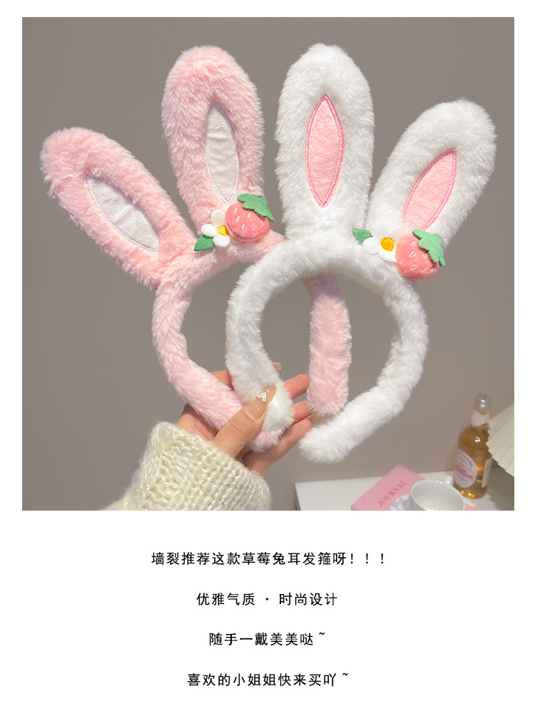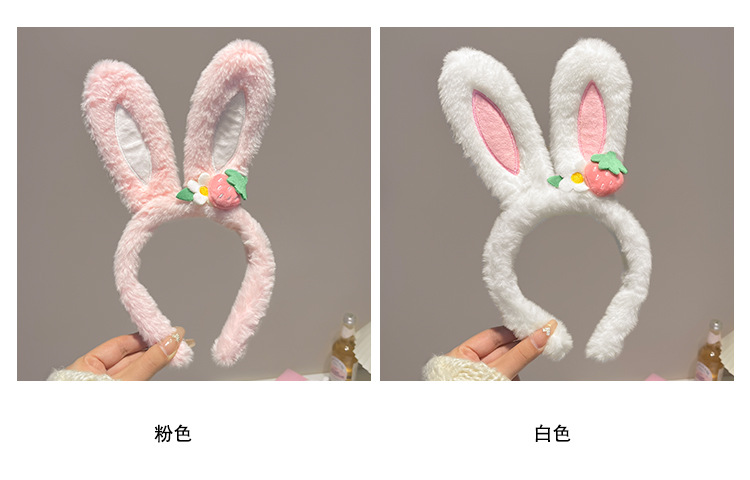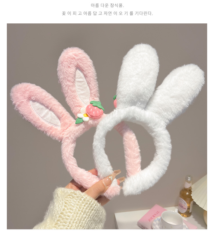 귀여운 딸기 꽃 토끼 귀 머리띠 여성용 겨울 봉제 프레스 헤어 머리띠 어린이 헤어 번들 헤어 클립 모자스토어 가기