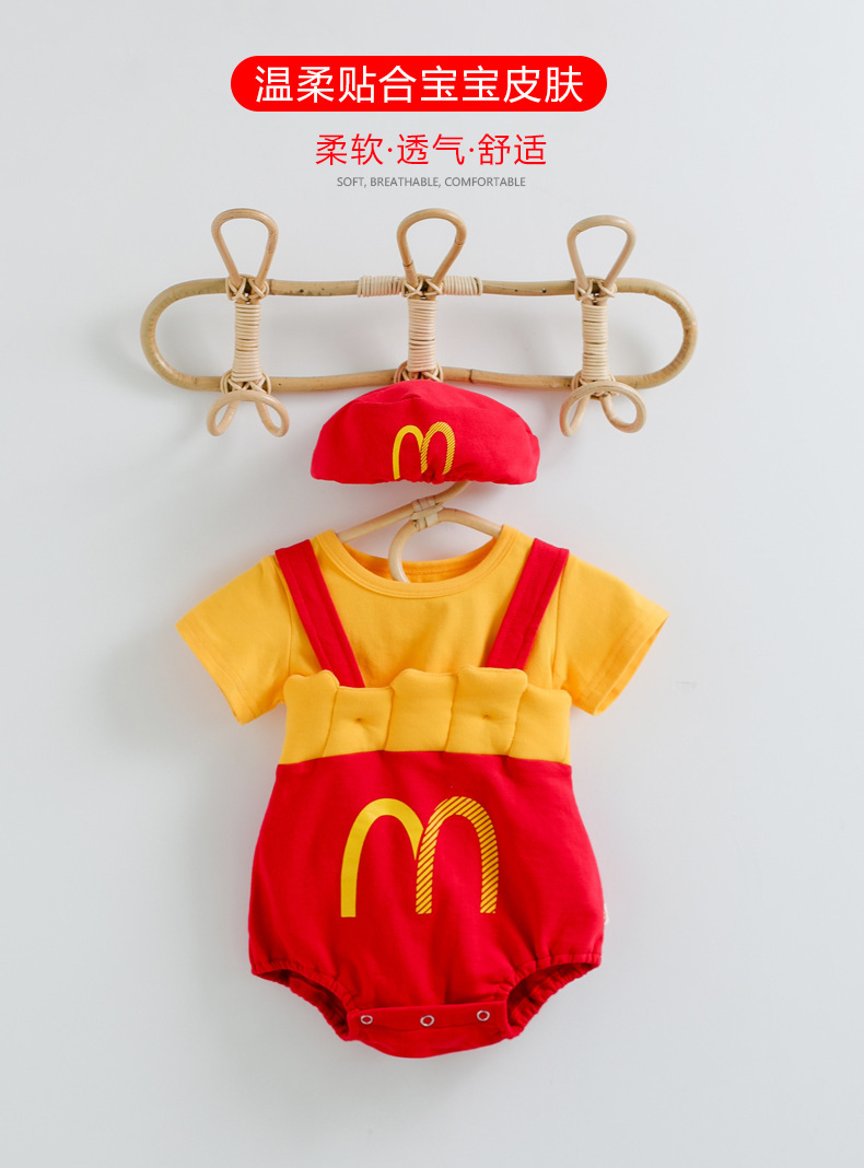 에서 여름 아기 랩 방귀 옷 얇은 만화 감자 튀김 슬링 토끼 옷 세트 소년과 소년 아기 종이 등산 옷
