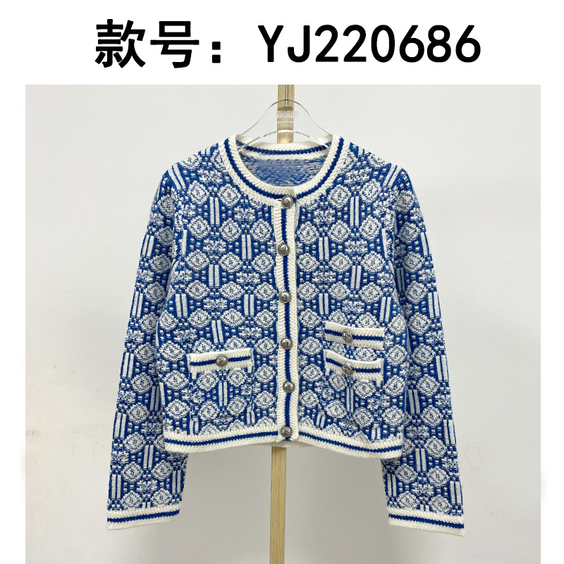 Yingjie M 가족 23 프랑스 디자인 감각 복고풍 블루 니트 가디건 + 조끼 여성 220 670 686스토어 가기