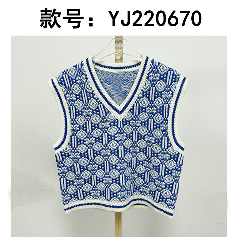 Yingjie M 가족 23 프랑스 디자인 감각 복고풍 블루 니트 가디건 + 조끼 여성 220 670 686