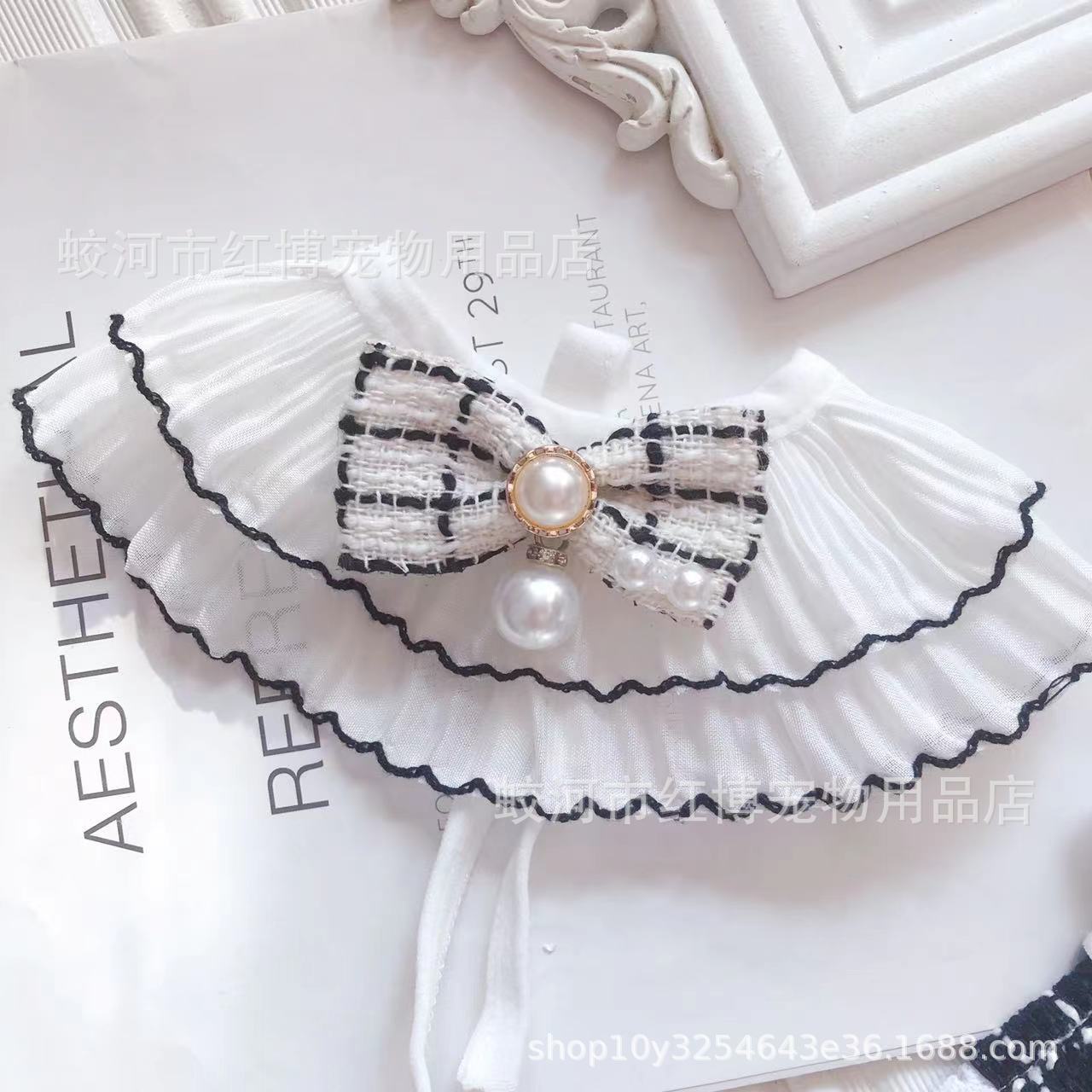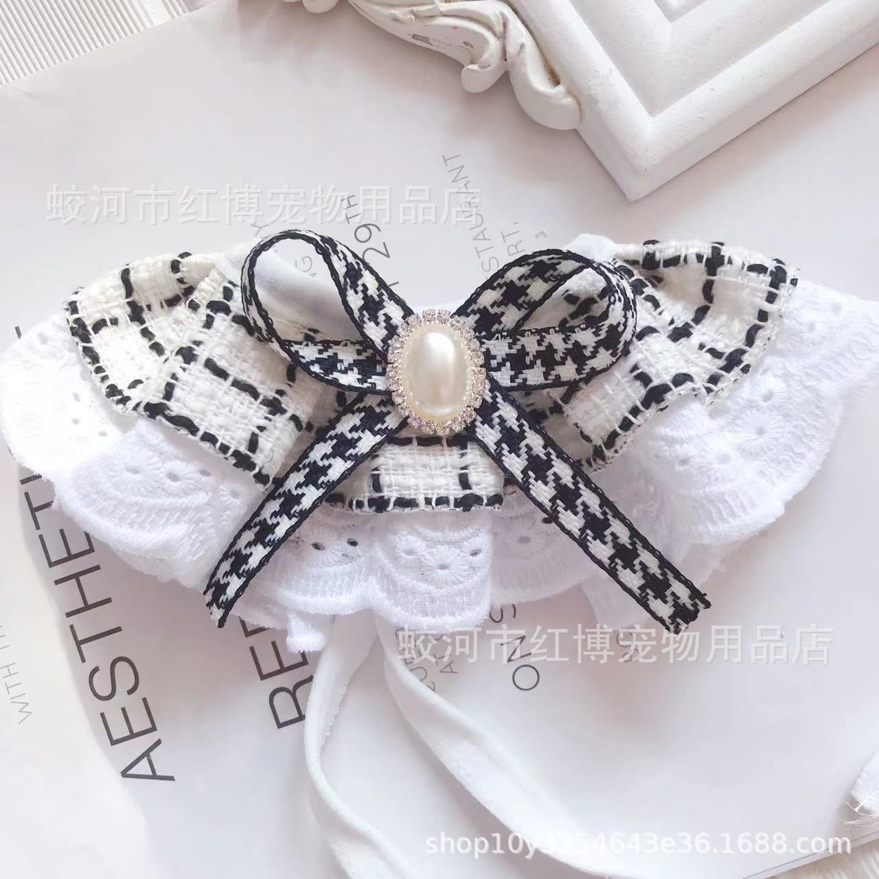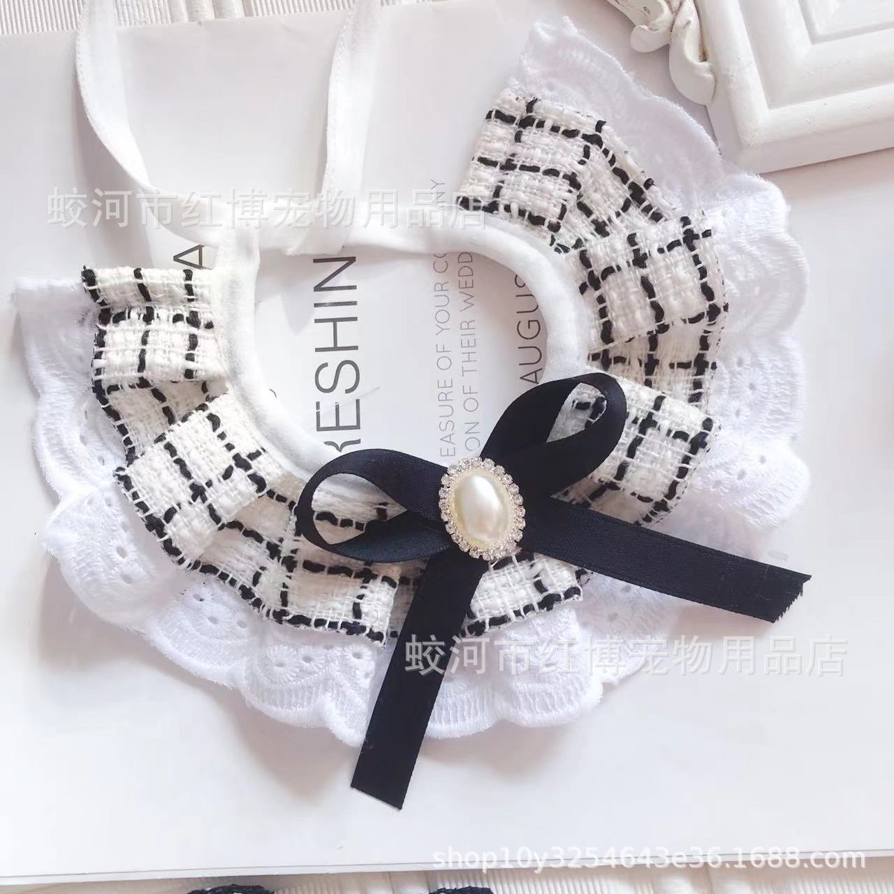 고양이 개 목걸이 레이스 칼라 애완 동물 스카프 보석 샤넬 스타일 턱받이 새해 애완 동물 미끄러운 수건스토어 가기
