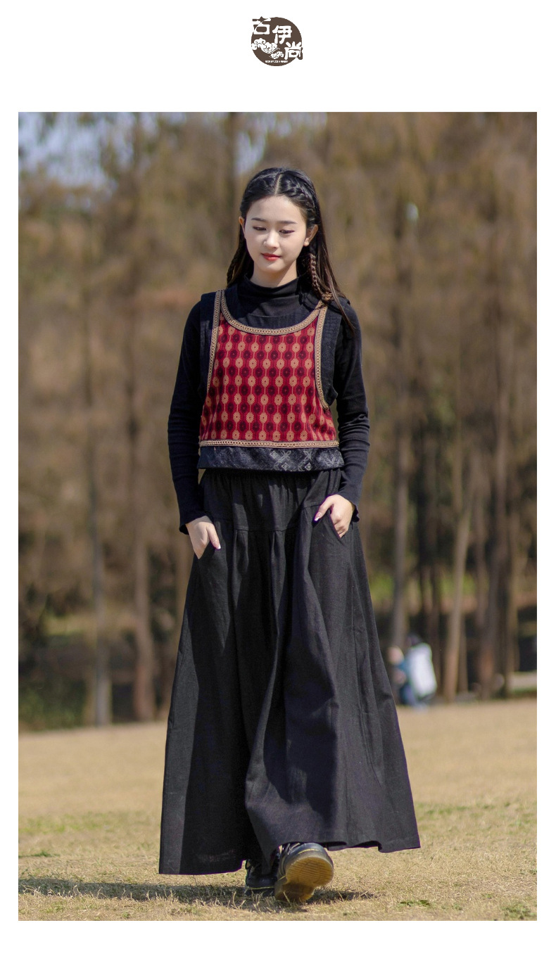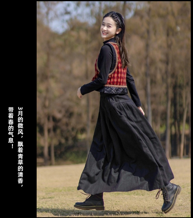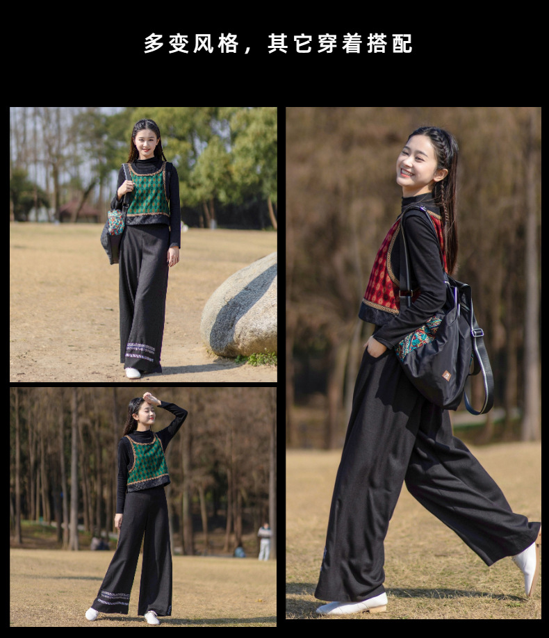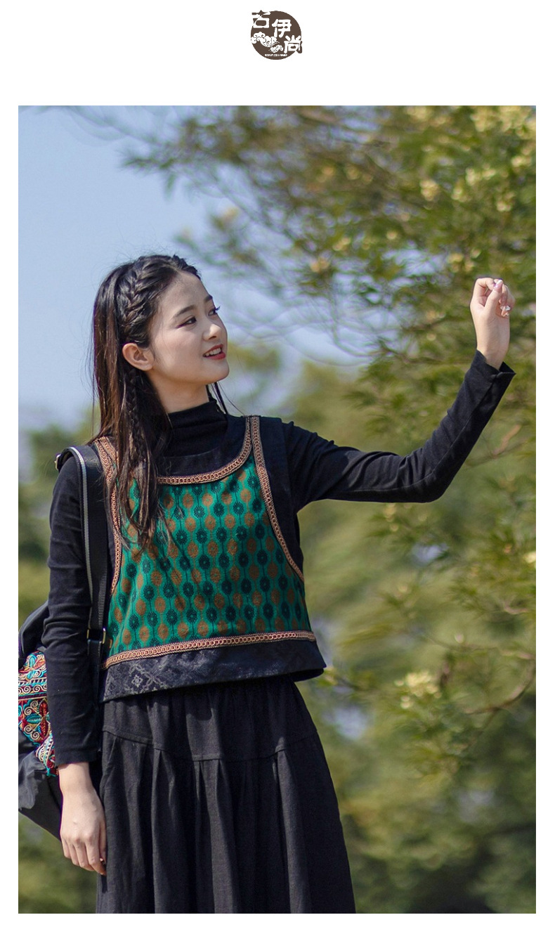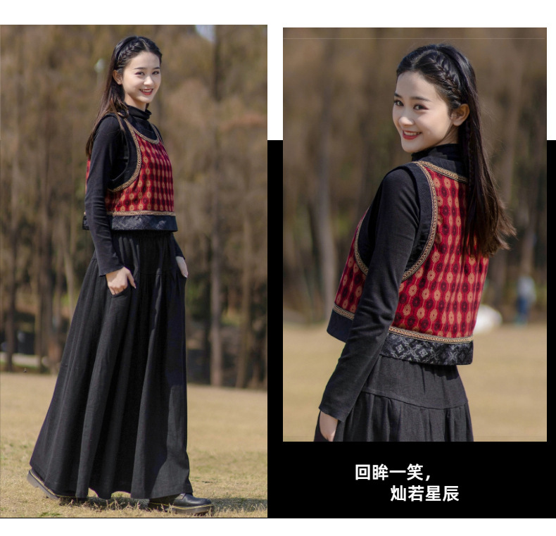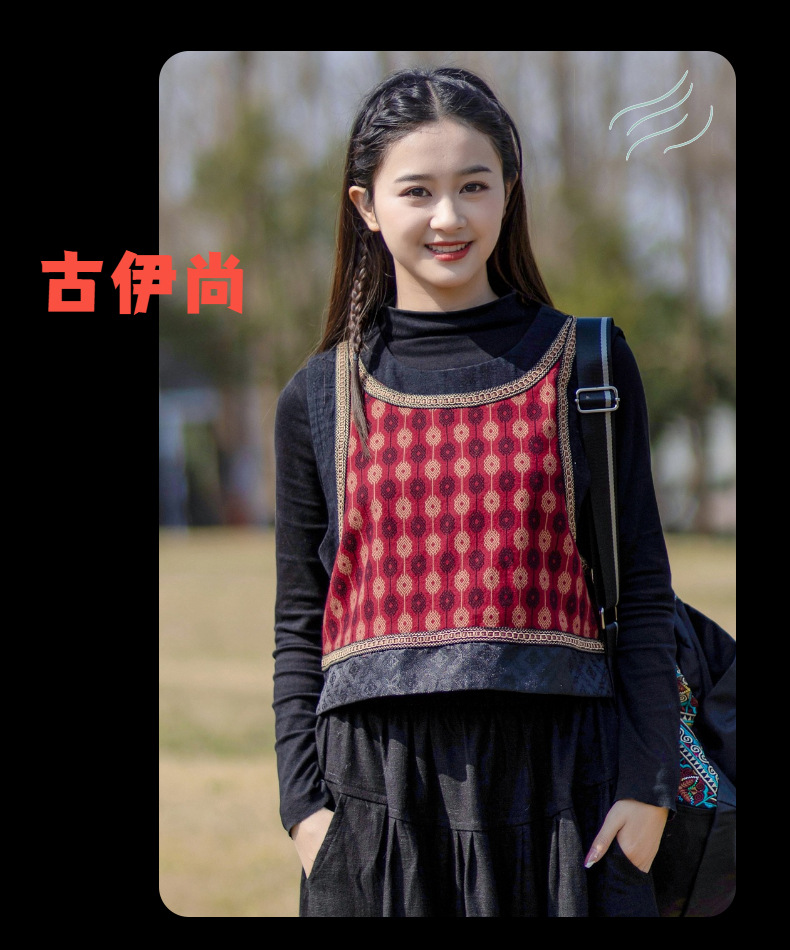 2025 가을 신상 민족풍 숏 조끼 기모면 레트로 배색 민소매 싱글 레이어 조끼 여성용스토어 가기