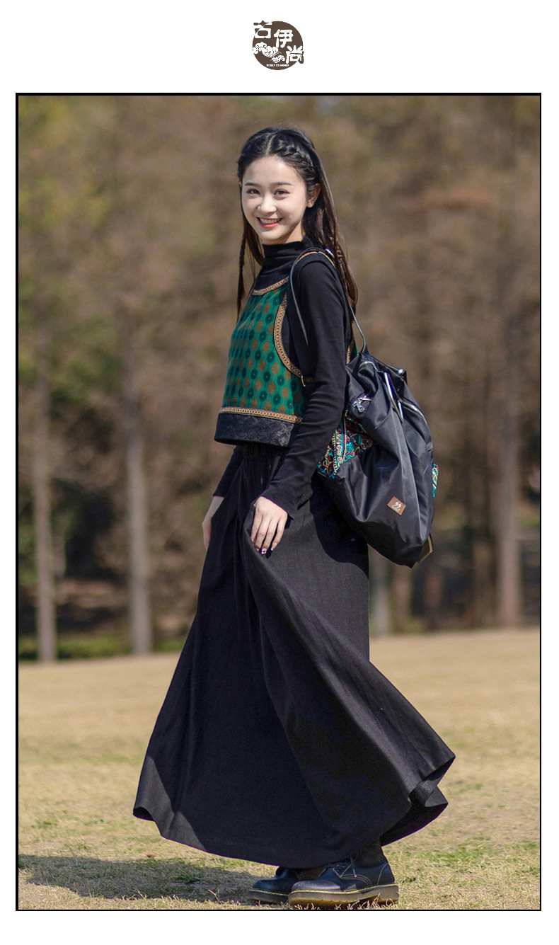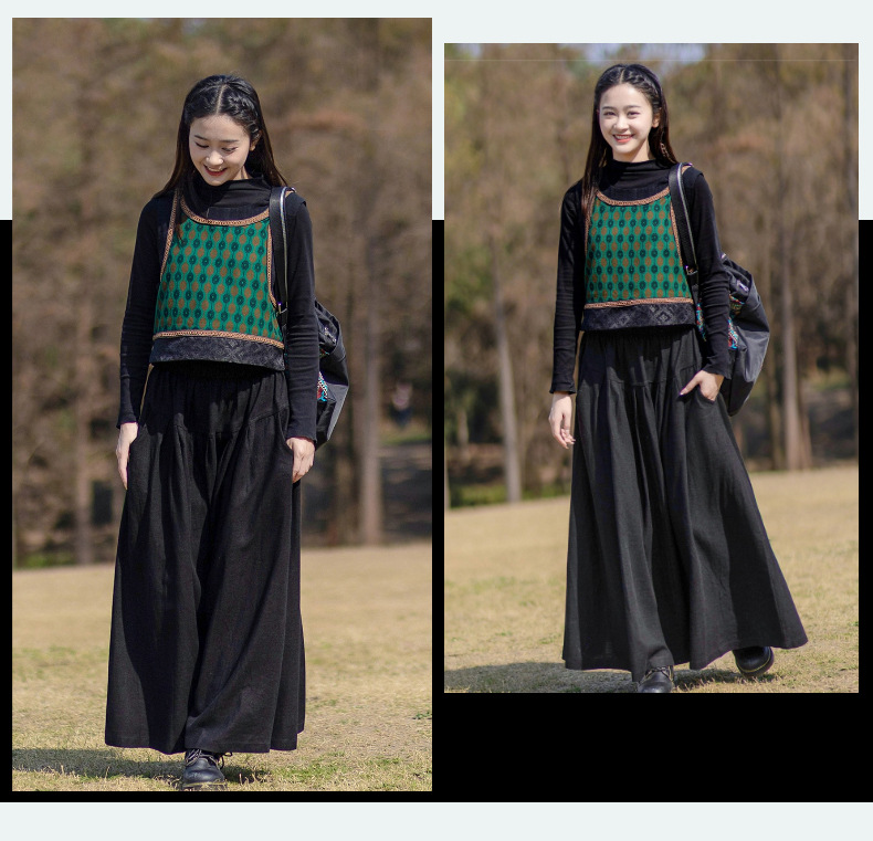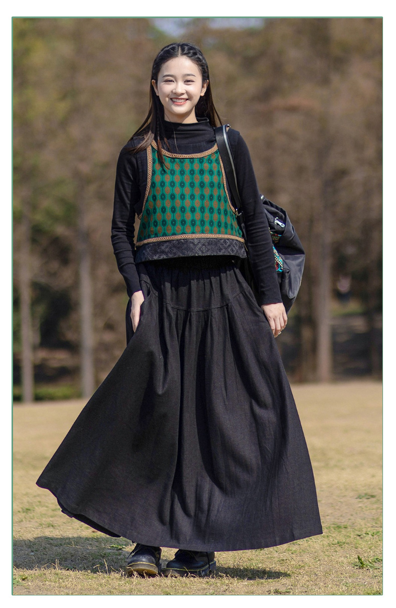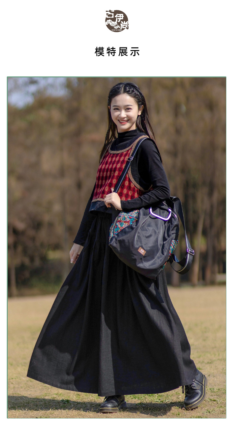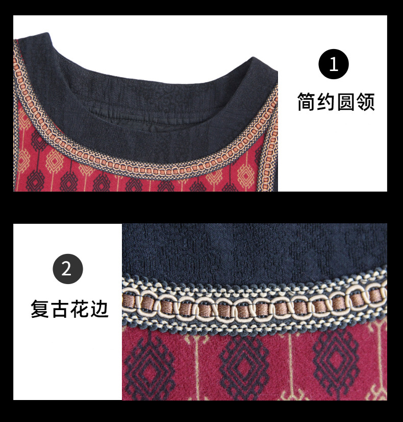 2025 가을 신상 민족풍 숏 조끼 기모면 레트로 배색 민소매 싱글 레이어 조끼 여성용