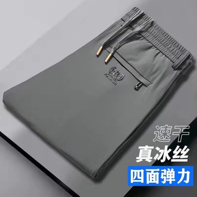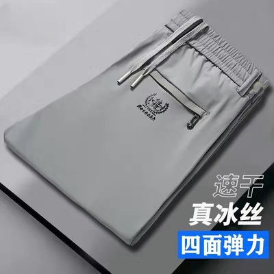 여름 얇은 아이스 실크 캐주얼 바지 남성용 트렌디 브랜드 스트레이트 스포츠 2022 여름 새로운 통기성 속건 롱 팬츠스토어 가기