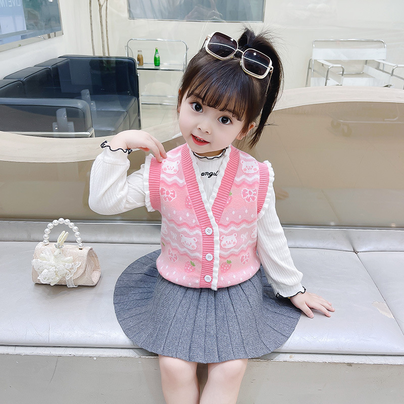 어린이 조끼 봄과 가을 아기 니트 울 작은 조끼 어린이 봄 스웨터 여아 조끼 외부 면제스토어 가기