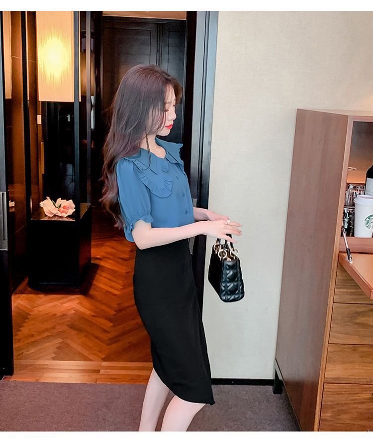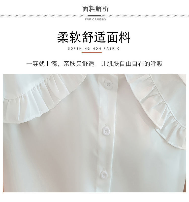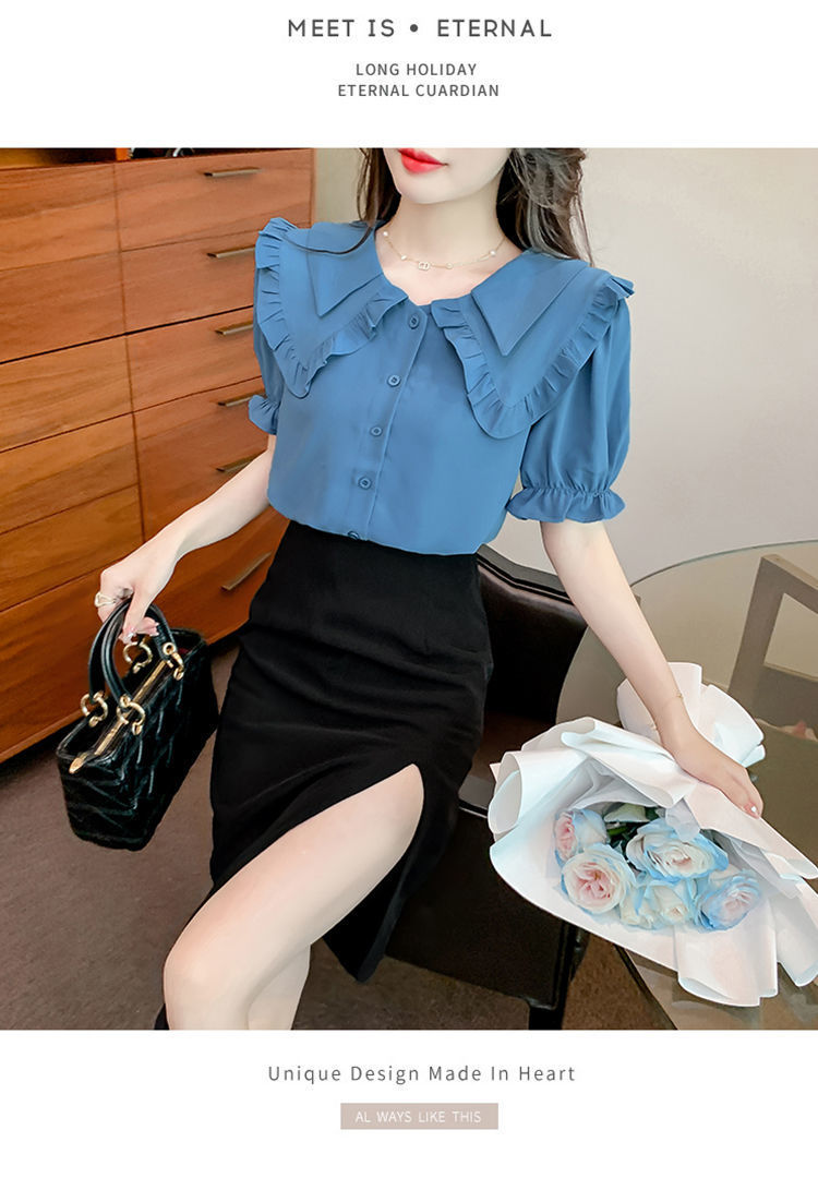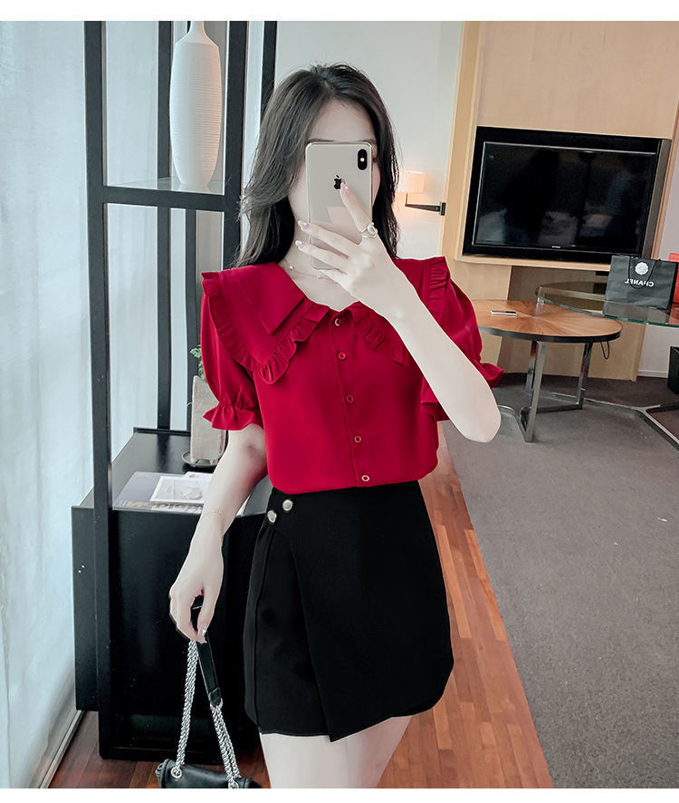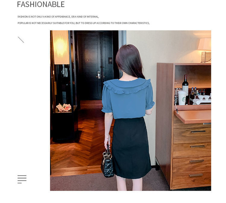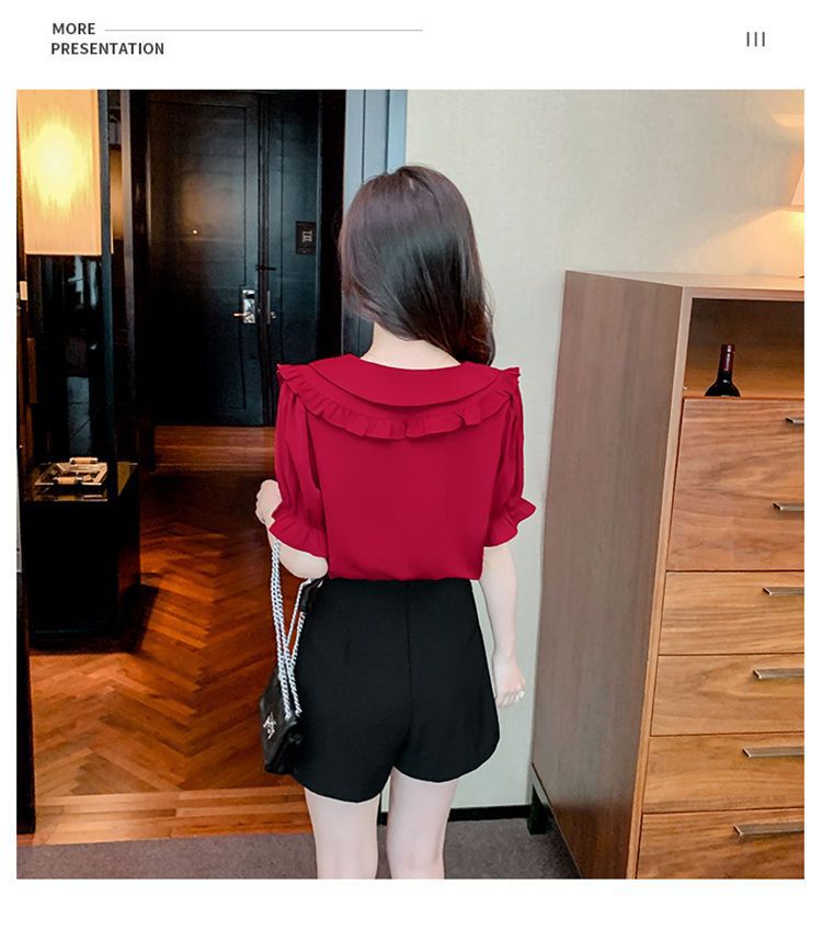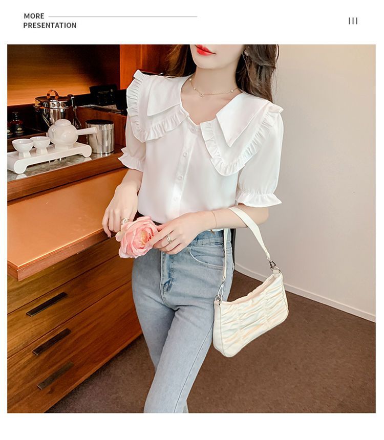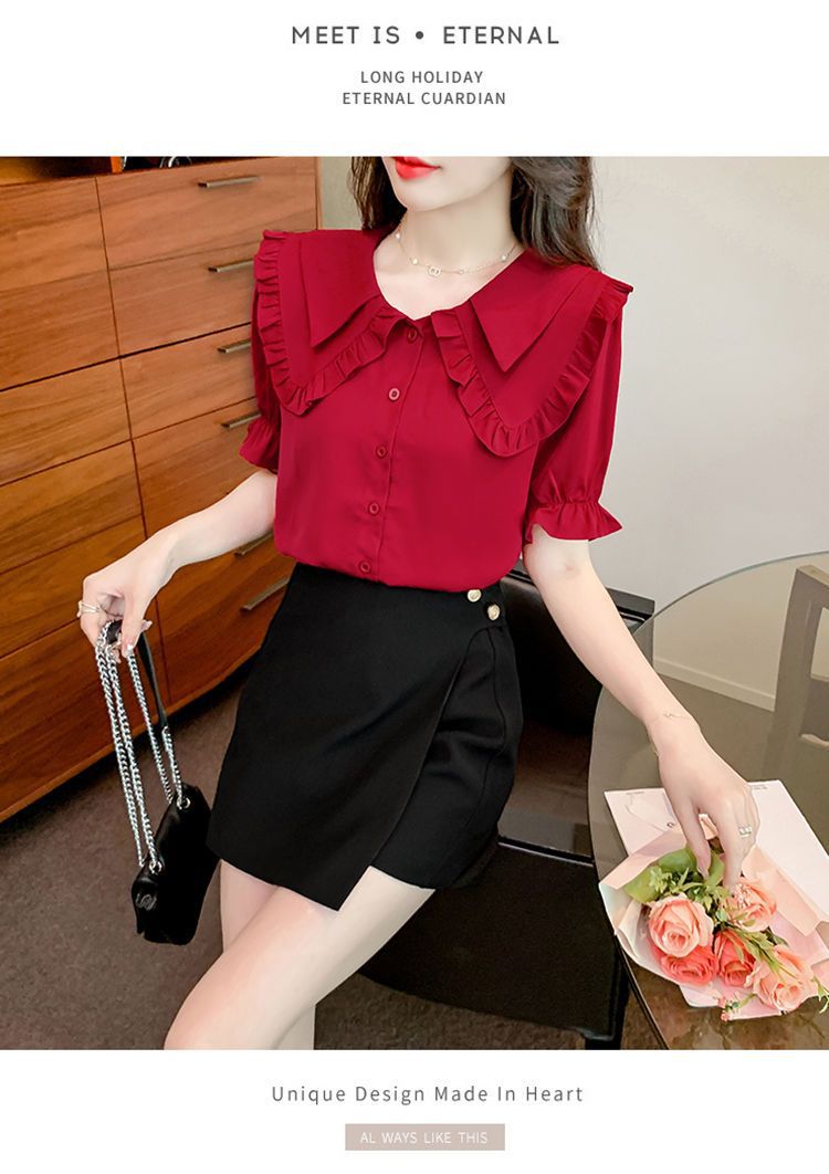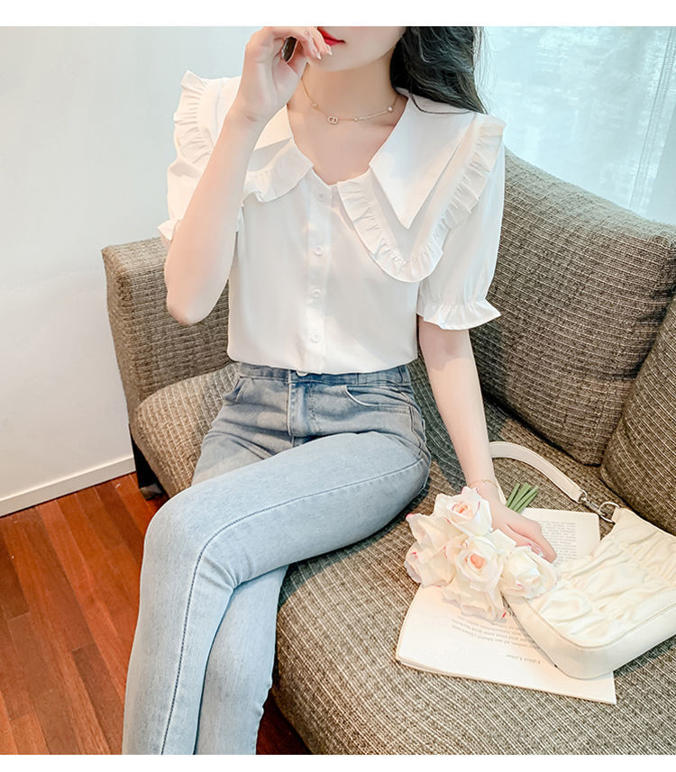 더블 레이어 인형 칼라 반팔 쉬폰 셔츠 여성용 2022 여름 새로운 한국 스타일 느슨한 유행 우아한 여성 탑스토어 가기