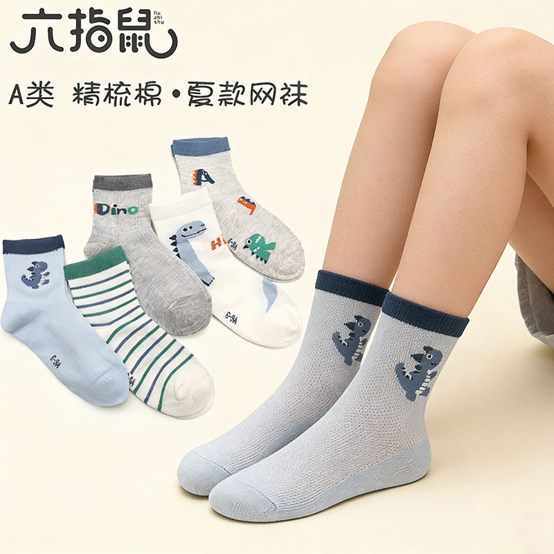 여섯 손가락 쥐 어린이 양말, 코마사 면 메쉬 양말, 여름 여아 중목 양말, 봄 가을 얇은 중대형 어린이 남아용 도매