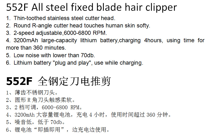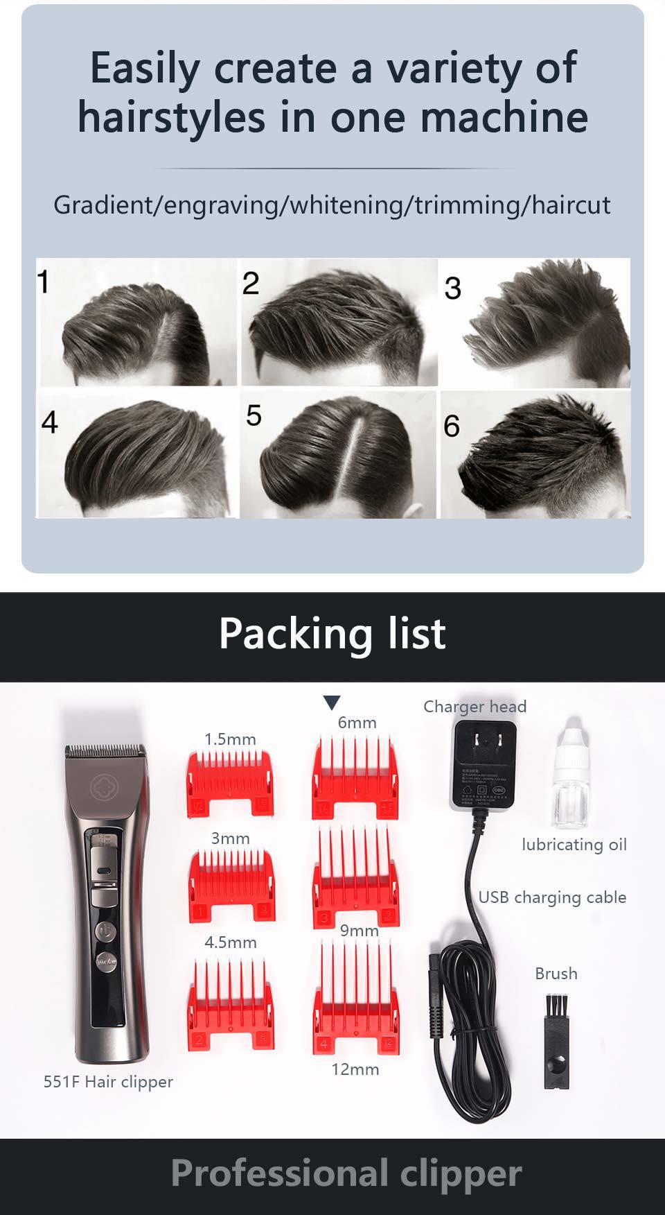 Ake Mei 552F 전문 전기 클리퍼 오일 헤드 모양 충전식 헤어 커터 초박형 커터 헤드 전기 클리퍼 가정용스토어 가기