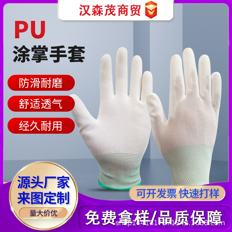 Pu 손가락 코팅 나일론 먼지없는 장갑 얇은 흰색 전자 공장 정전기 방지 접착제 코팅 노동 보호 손바닥 코팅 장갑 도매스토어 가기