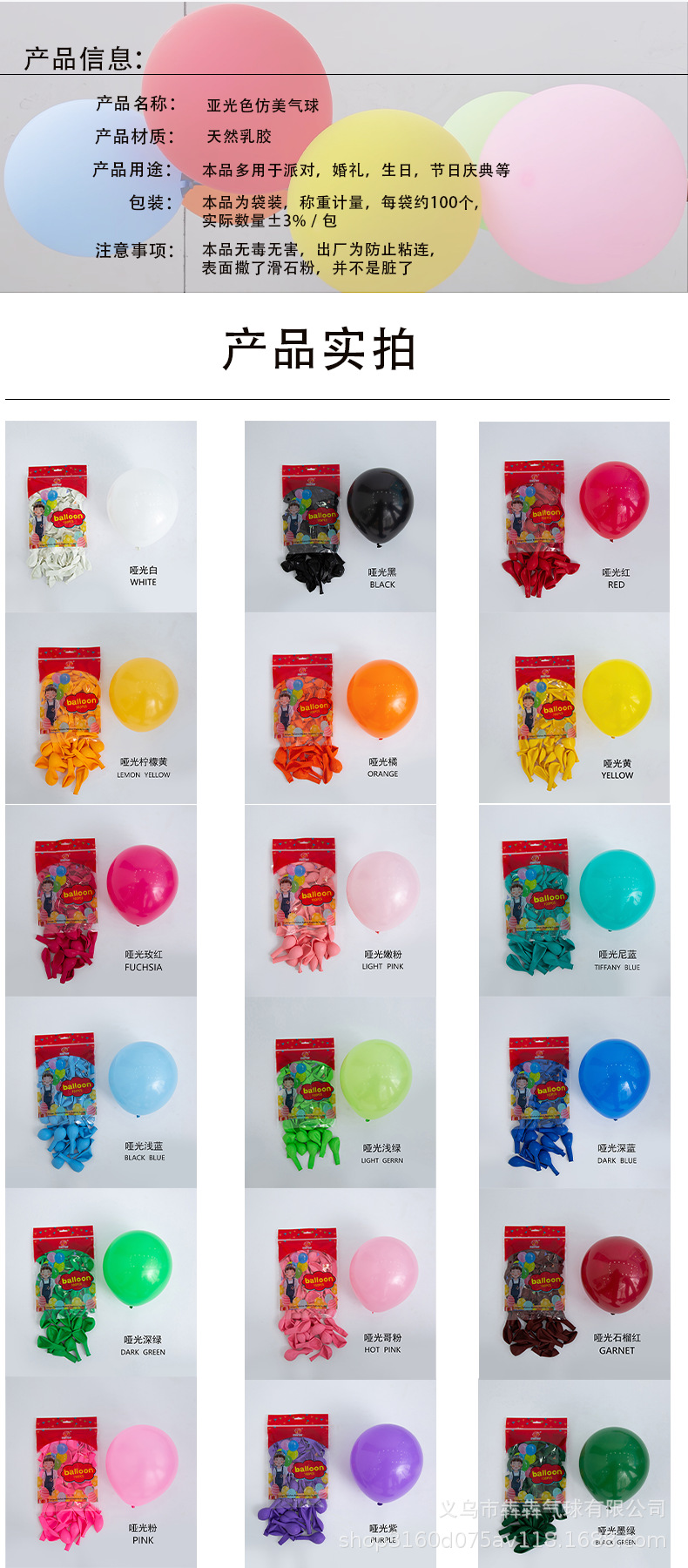 도매 매트 2.2g 10 인치 어린이 생일 장식 웨딩 파티 세트 Xiongxian 라텍스 풍선스토어 가기