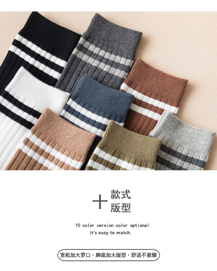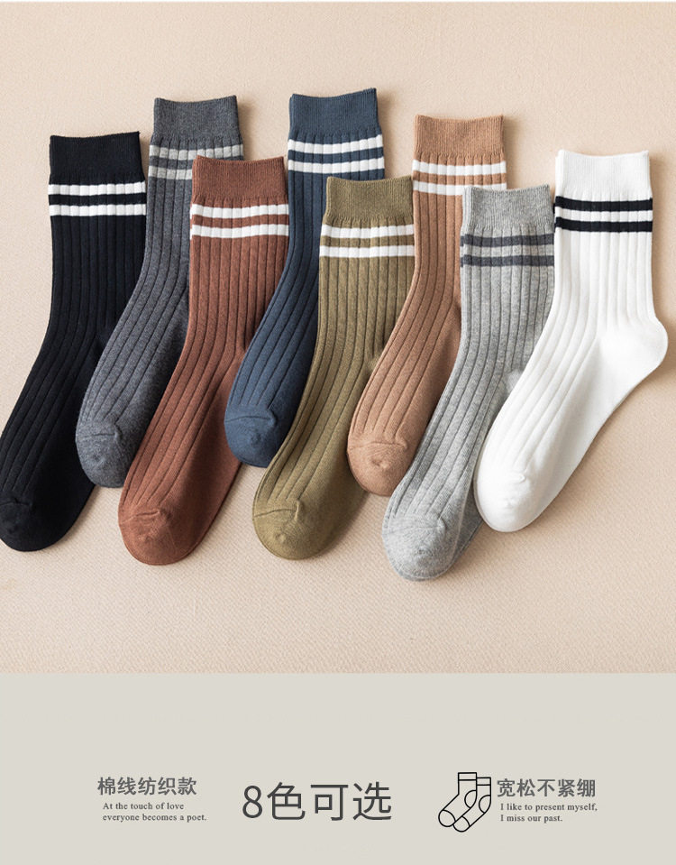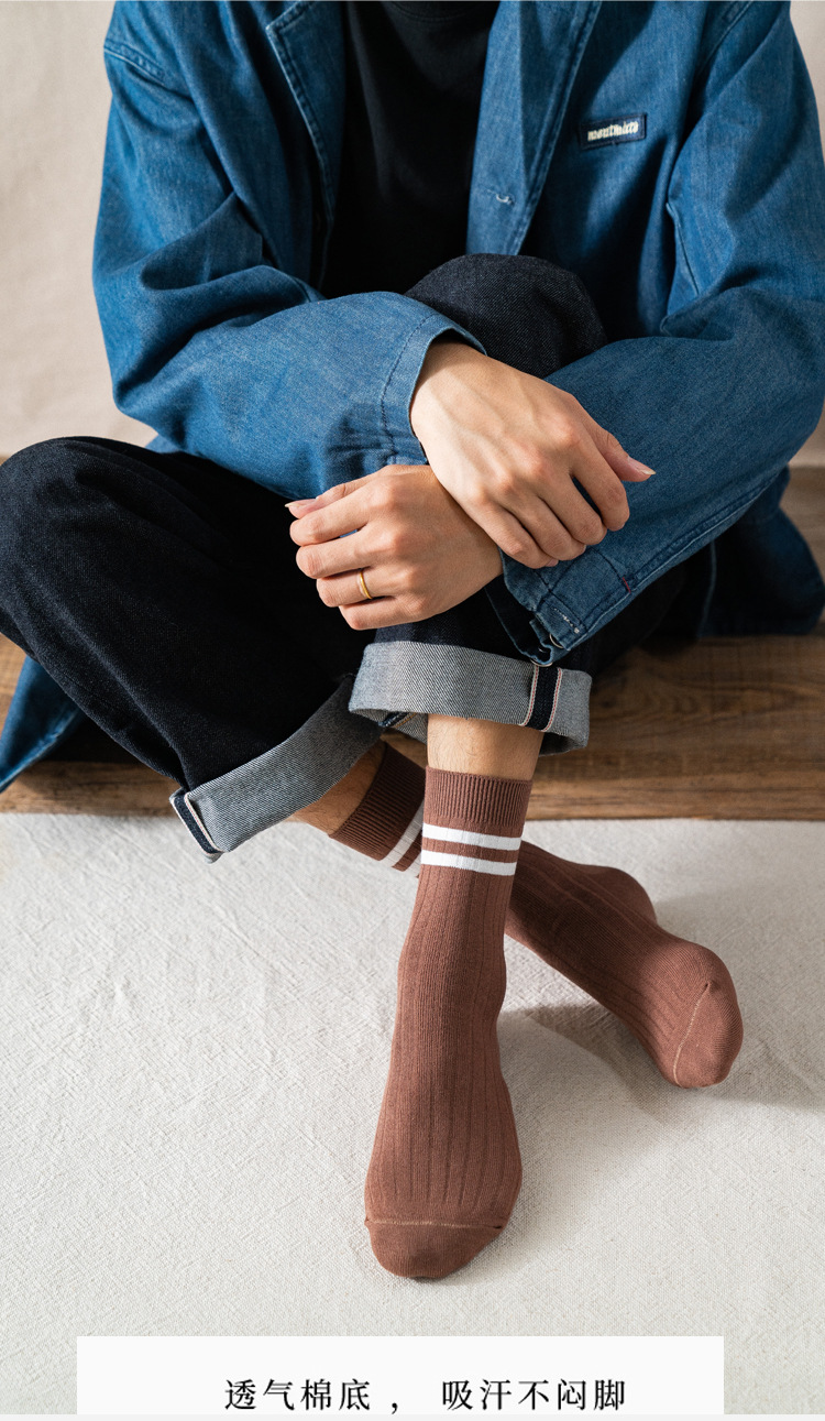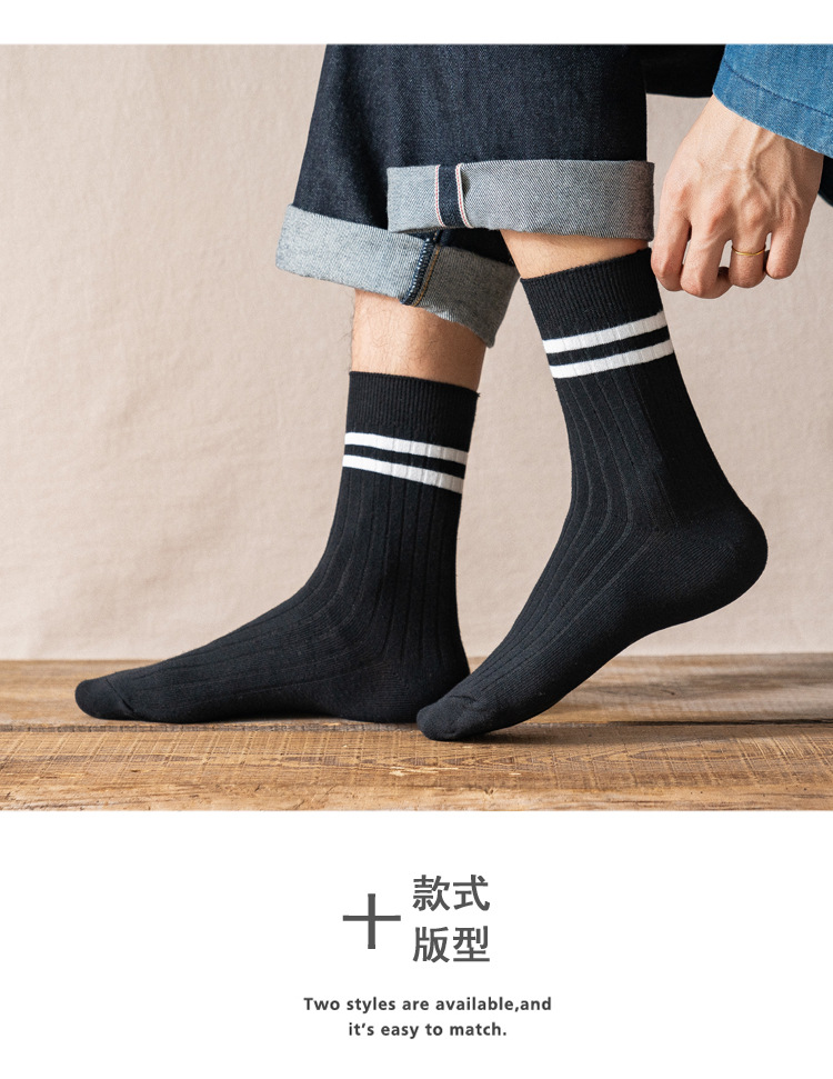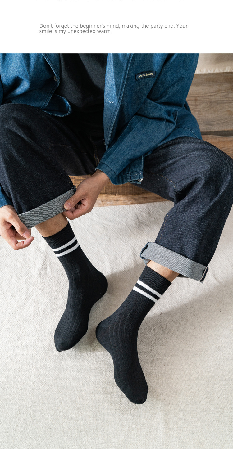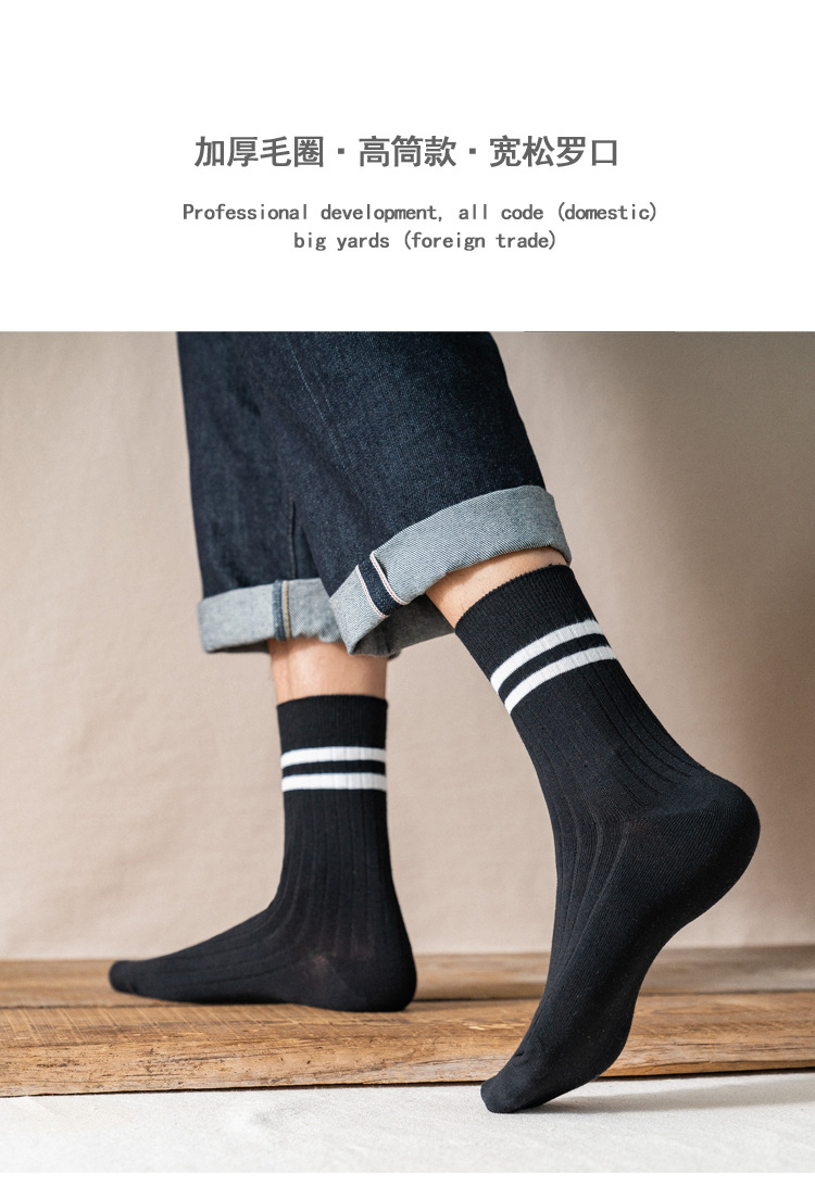 중간 배럴 양말 남성용 봄과 가을 면화 땀 흡수 탈취제 통기성 면화 일본 가을과 겨울 긴 두꺼운 줄무늬 양말
